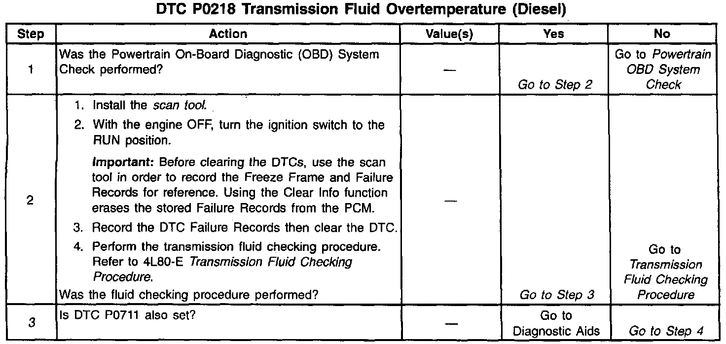 3. DTC P0711 may also set a DTC P0218. Go to the DTC P0711 table for diagnosis.
