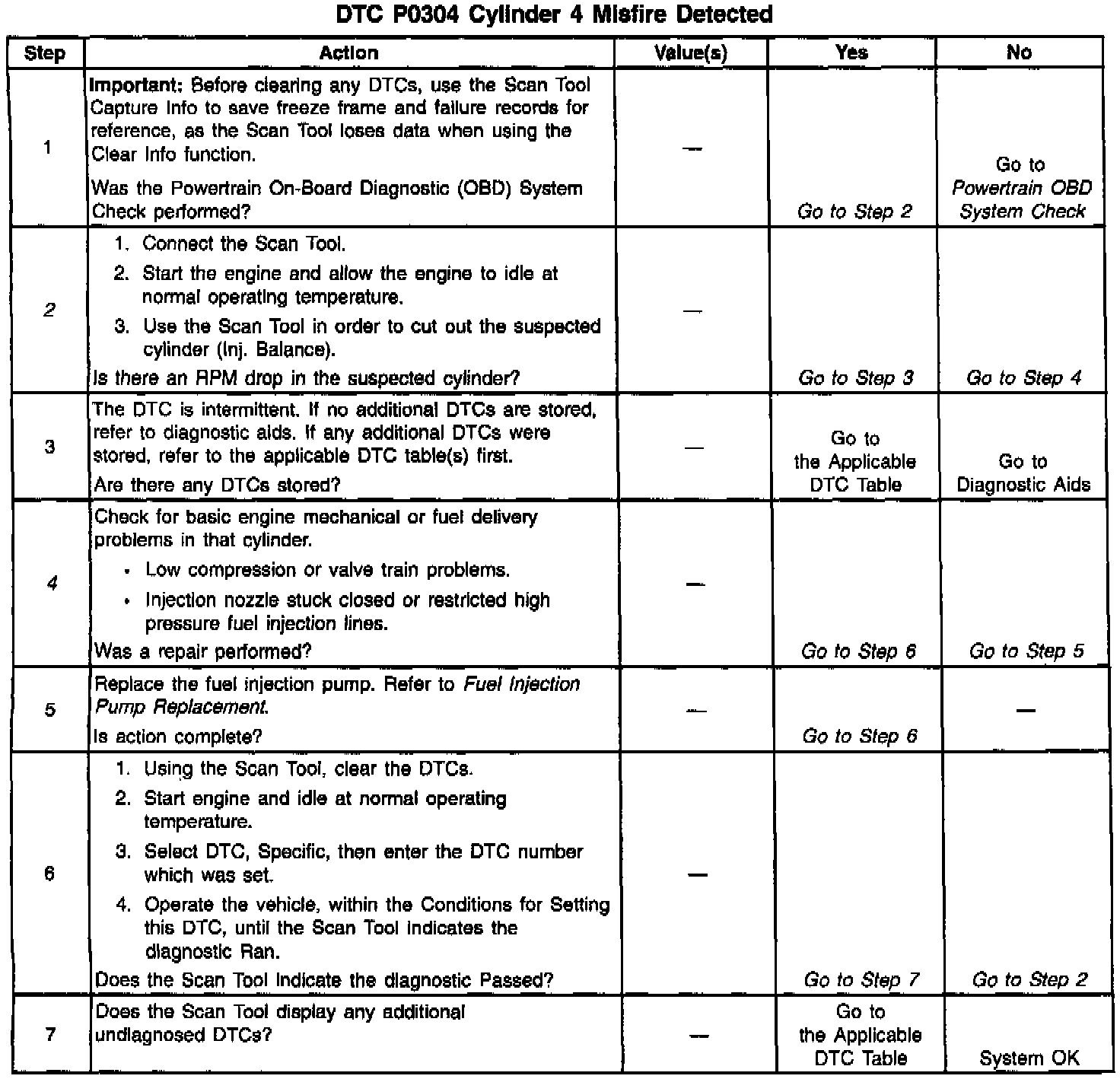 The number(s) below refer to the step number(s) on the Diagnostic Table.