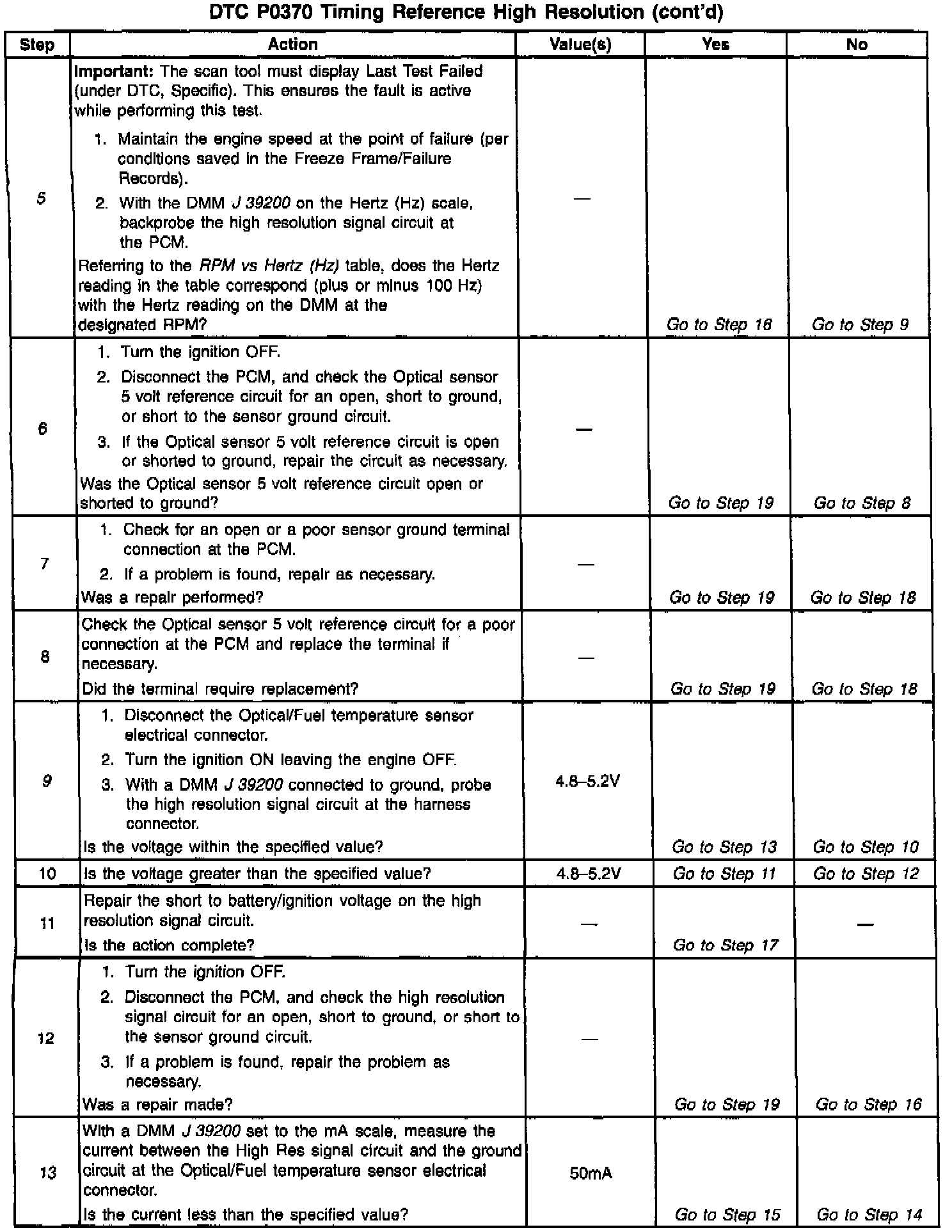 13. This step determines if the signal circuit is shorted to 5V. A normal high res signal circuit will have 3-5mA. Any reading over 50mA indicates a short to 5V.