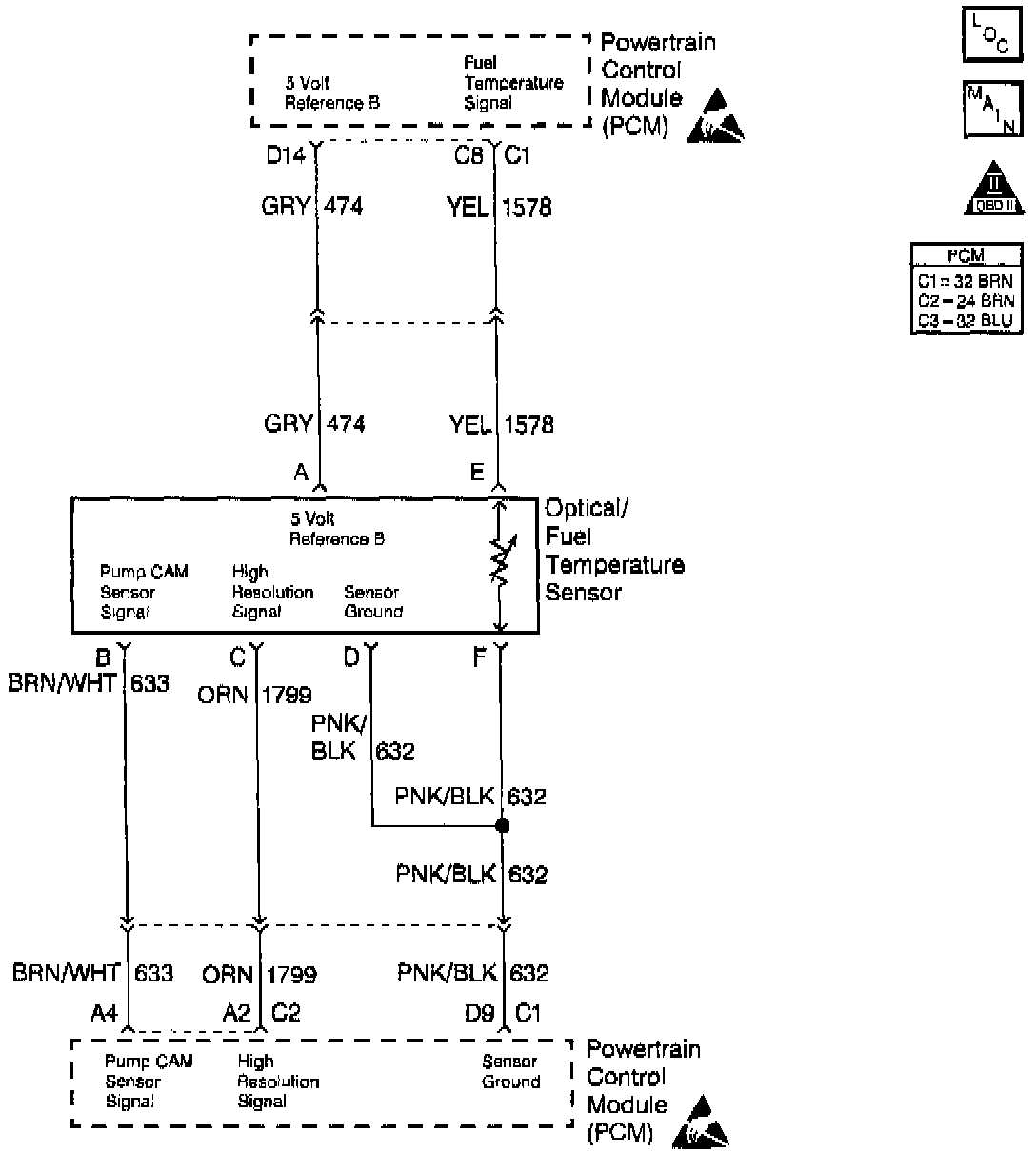 The optical sensor provides a high resolution signal to the PCM by counting the pulses on the sensor disk which is located in the injection pump. The high resolution is one of the most important inputs by the PCM for the fuel control and the timing. This test monitors the number of high resolution pulses which have been missed (not detected). This test is based on a comparison between the number of pulses that were detected since the last pump cam pulse and the number of the pulses that should have occurred.