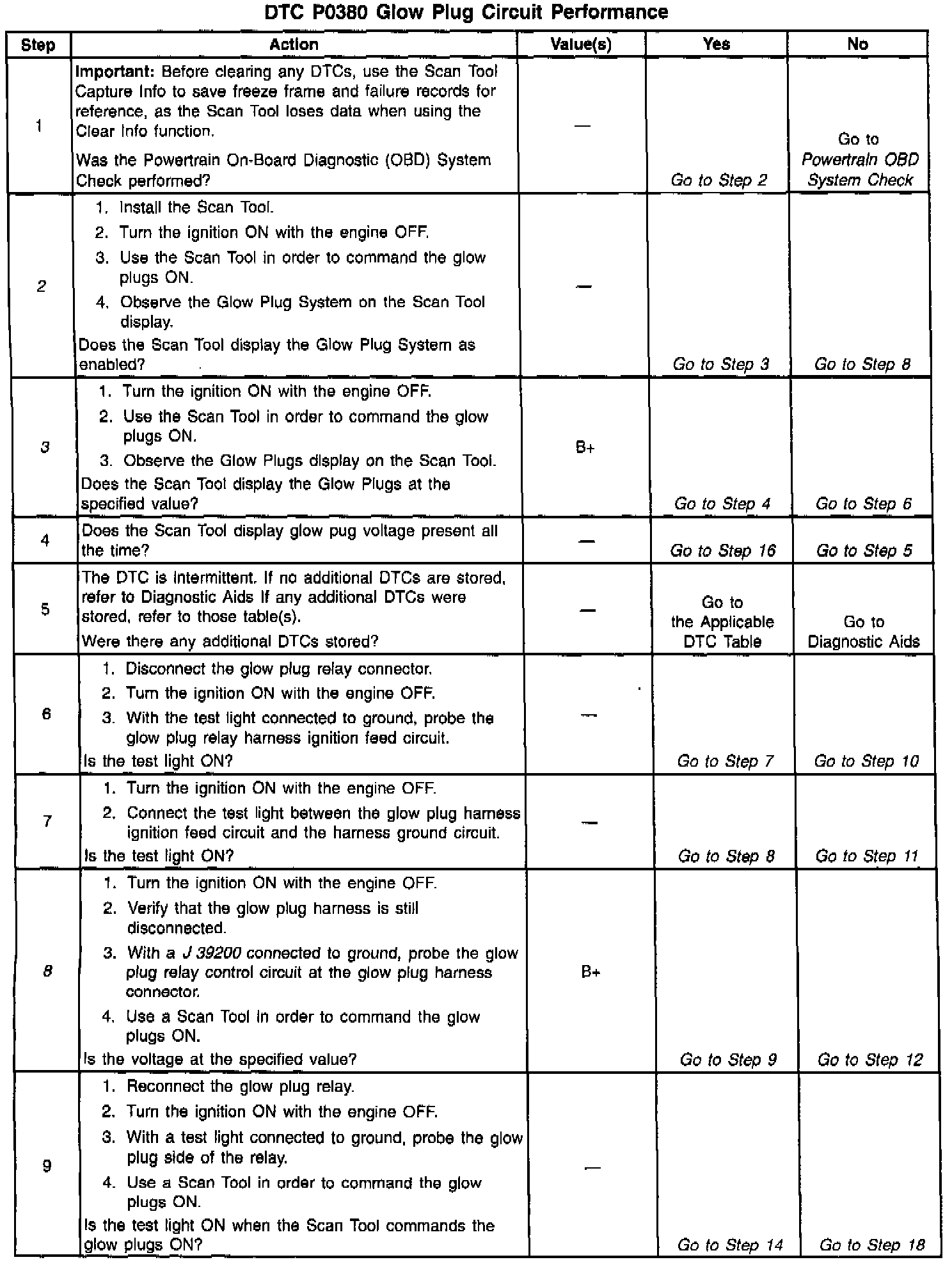 8. This Step will determine if the glow plug relay has been activated and the output voltage has been seen by the PCM.