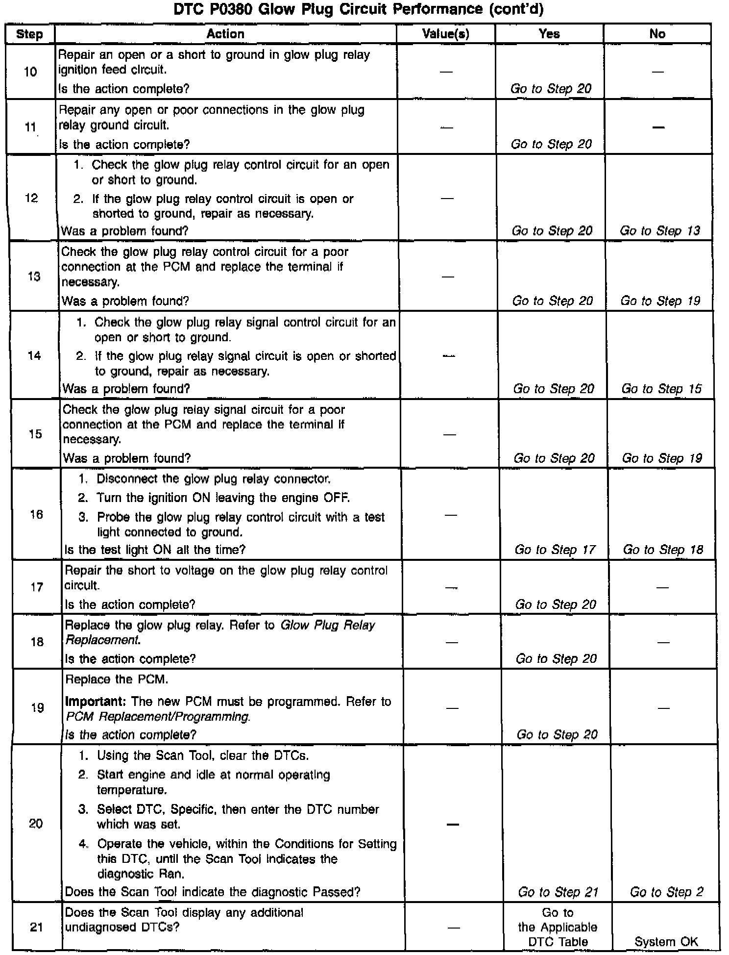 ^ The PCM has commanded the glow plugs OFF and the voltage at the glow plugs is greater than 4.0 volts.
