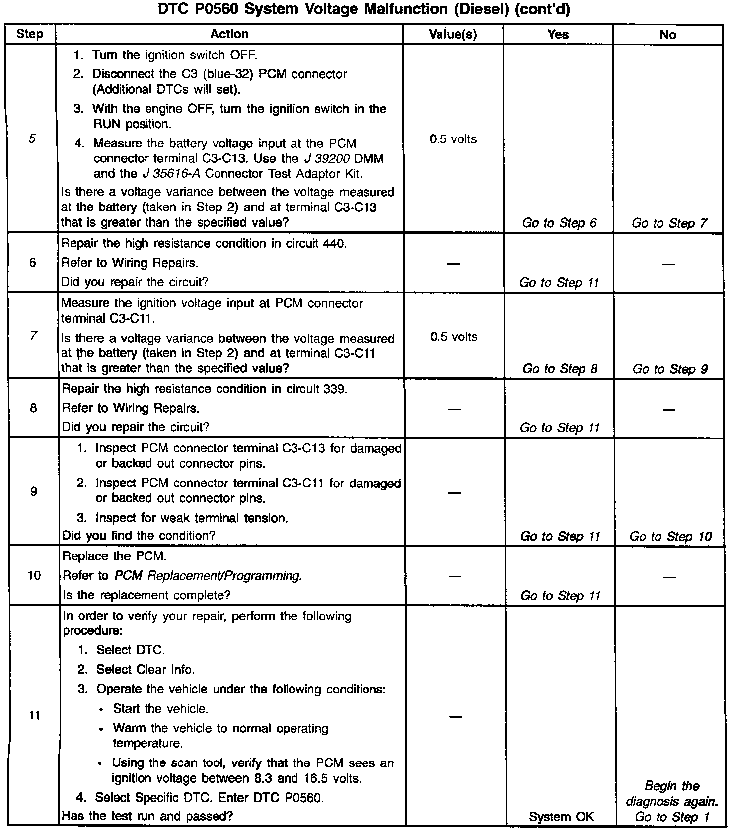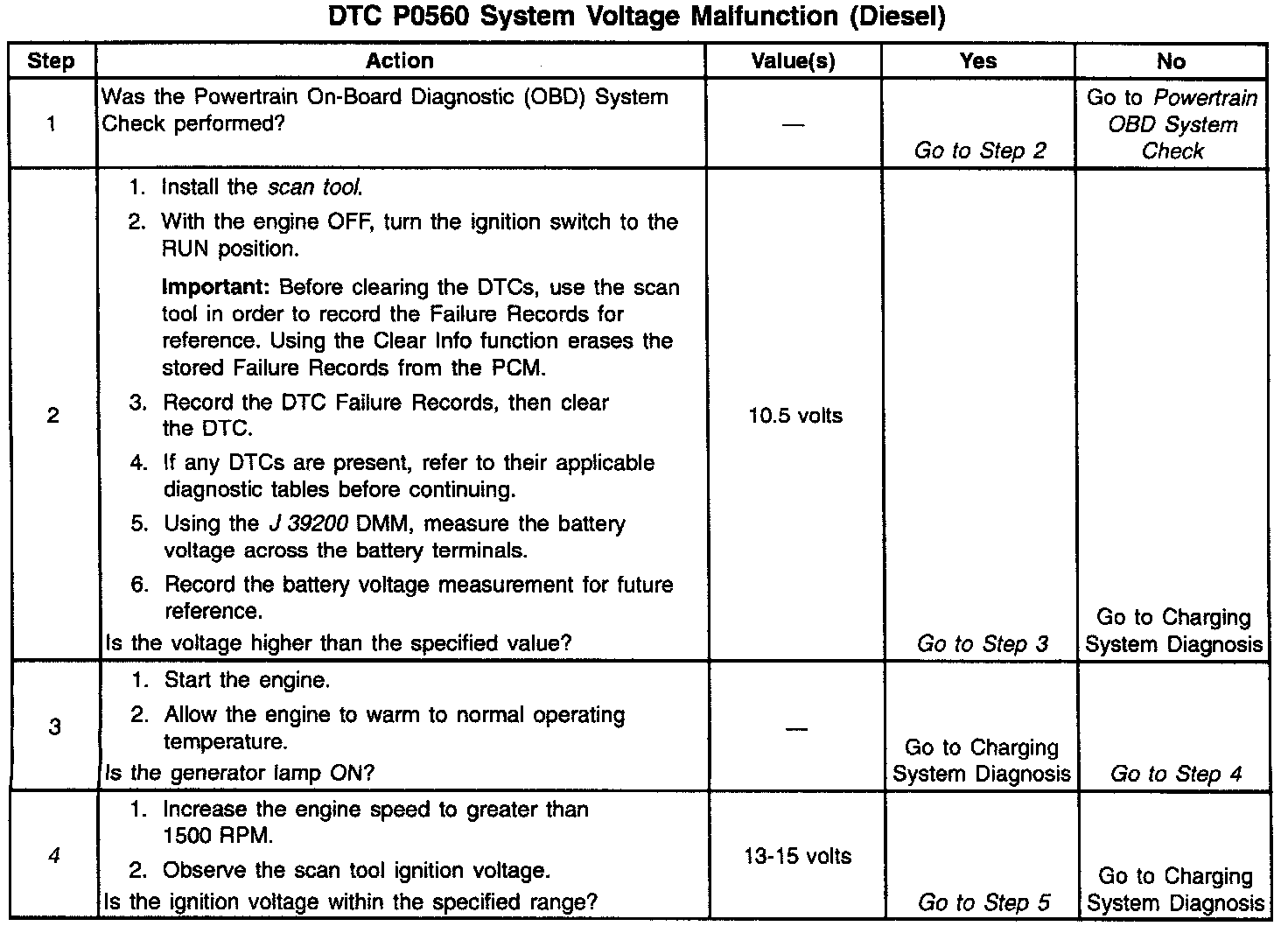 If the PCM detects either a low system voltage or a high system voltage for a short time, then DTC P0560 sets. DTC P0560 is a type D DTC.