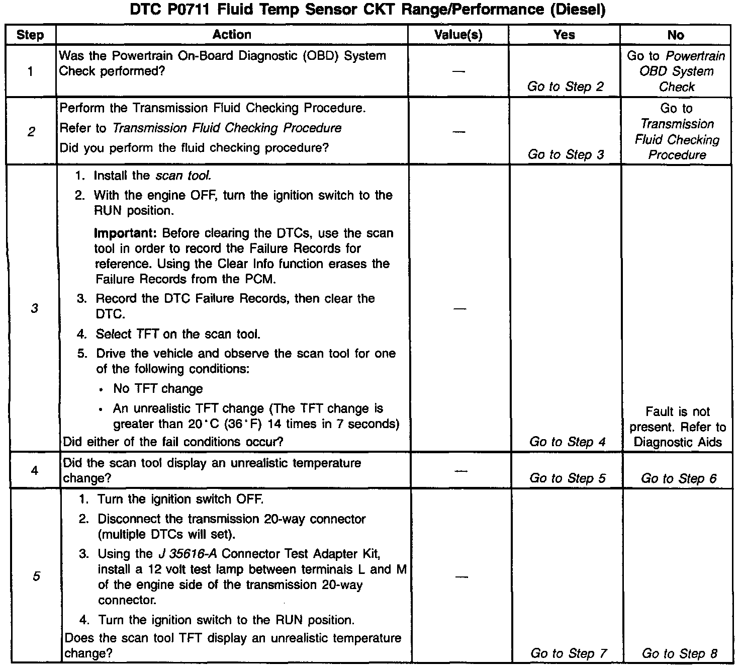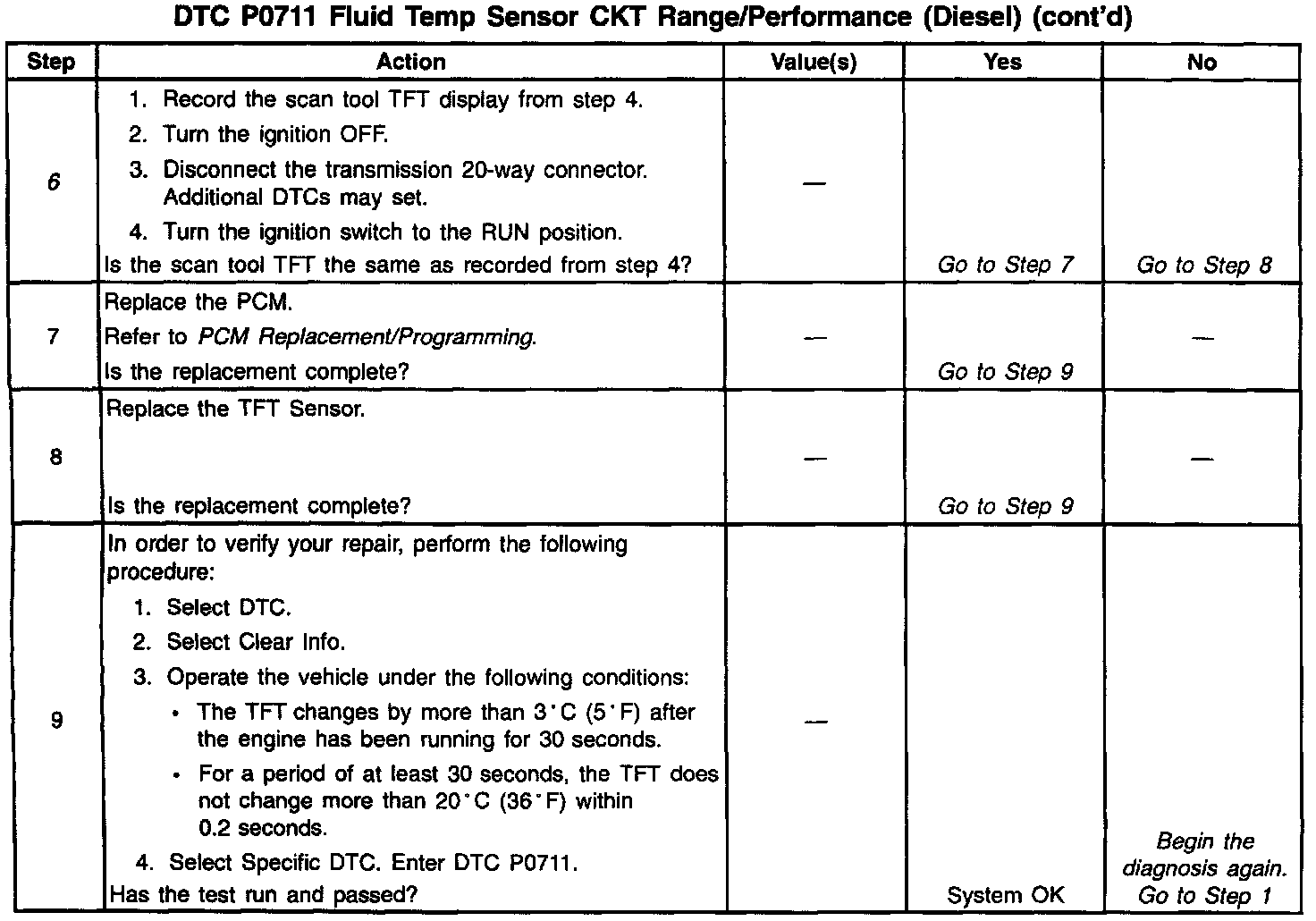 ^ DTC P0218 may set approximately 600 seconds after DTC P0711 has set. Follow the diagnostic table for DTC P0711 before proceeding to the diagnostic table for DTC P0218.