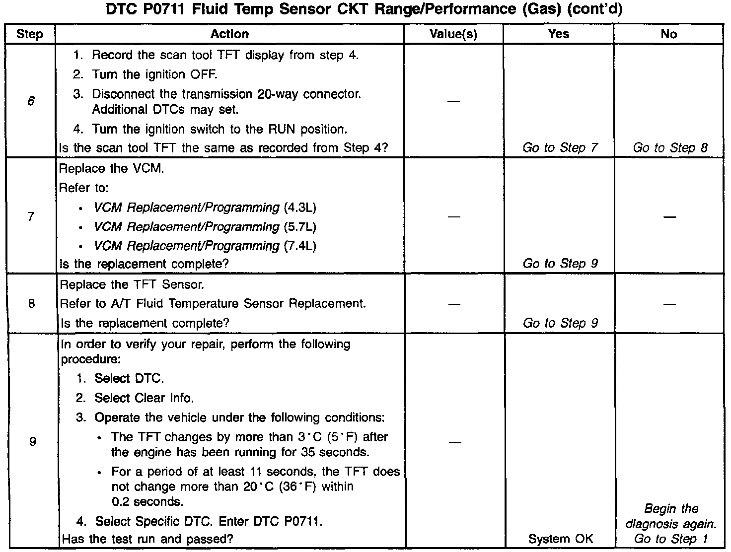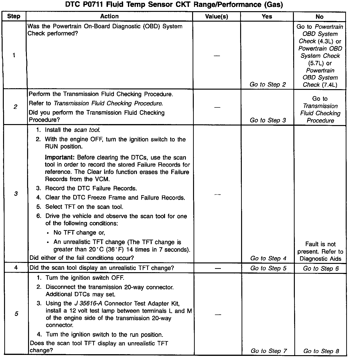 3. This step verifies which condition has set DTC P0711.