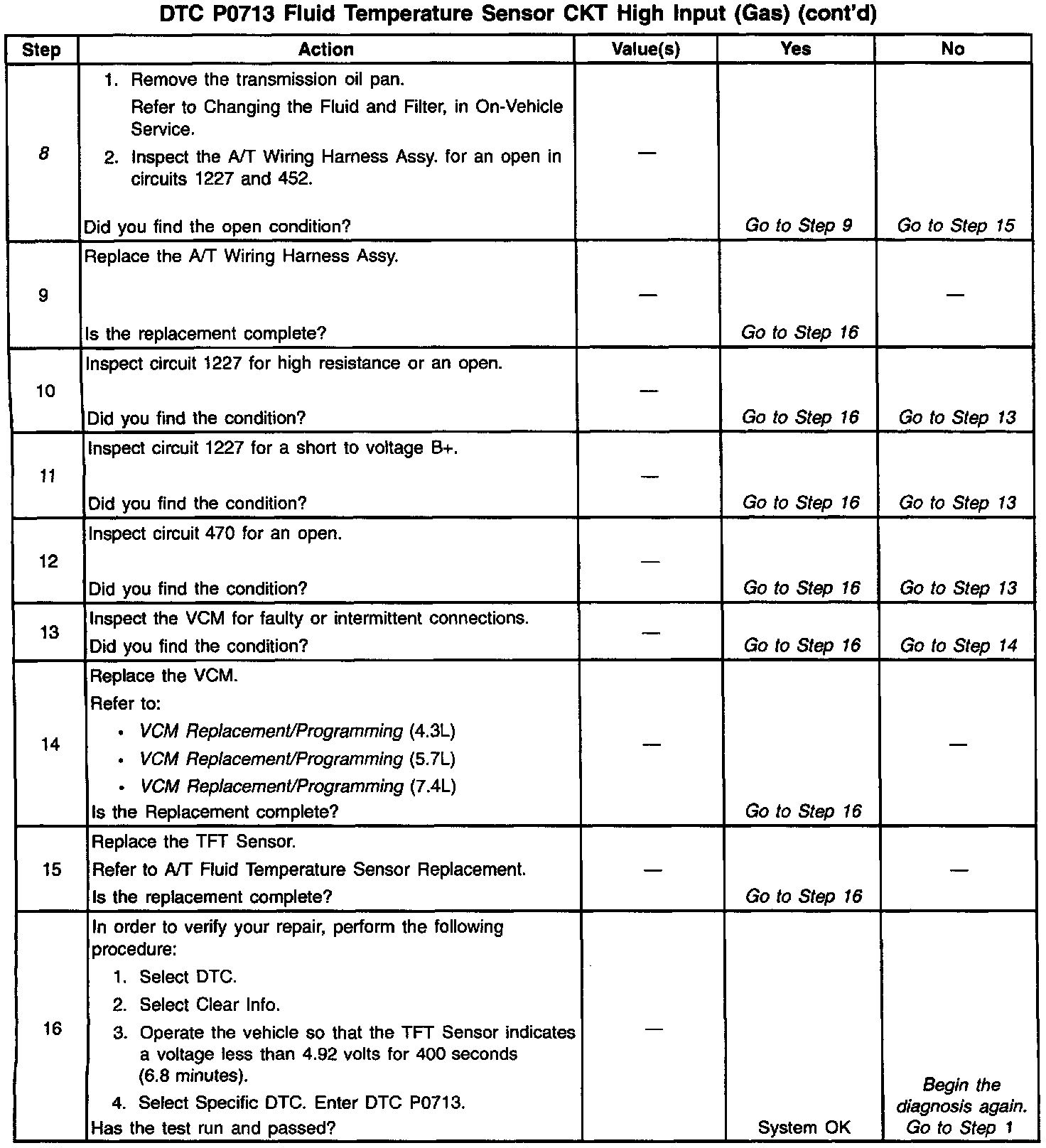 7. This step verifies a problem in the TFT Sensor circuit inside the transmission.