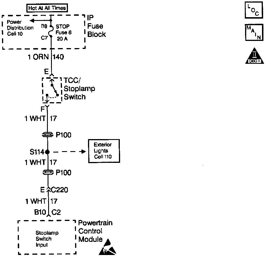 ^ The PCM detects an open TCC/Stoplamp switch/circuit (0 volts) and the following sequence of events occur ten consecutive times: