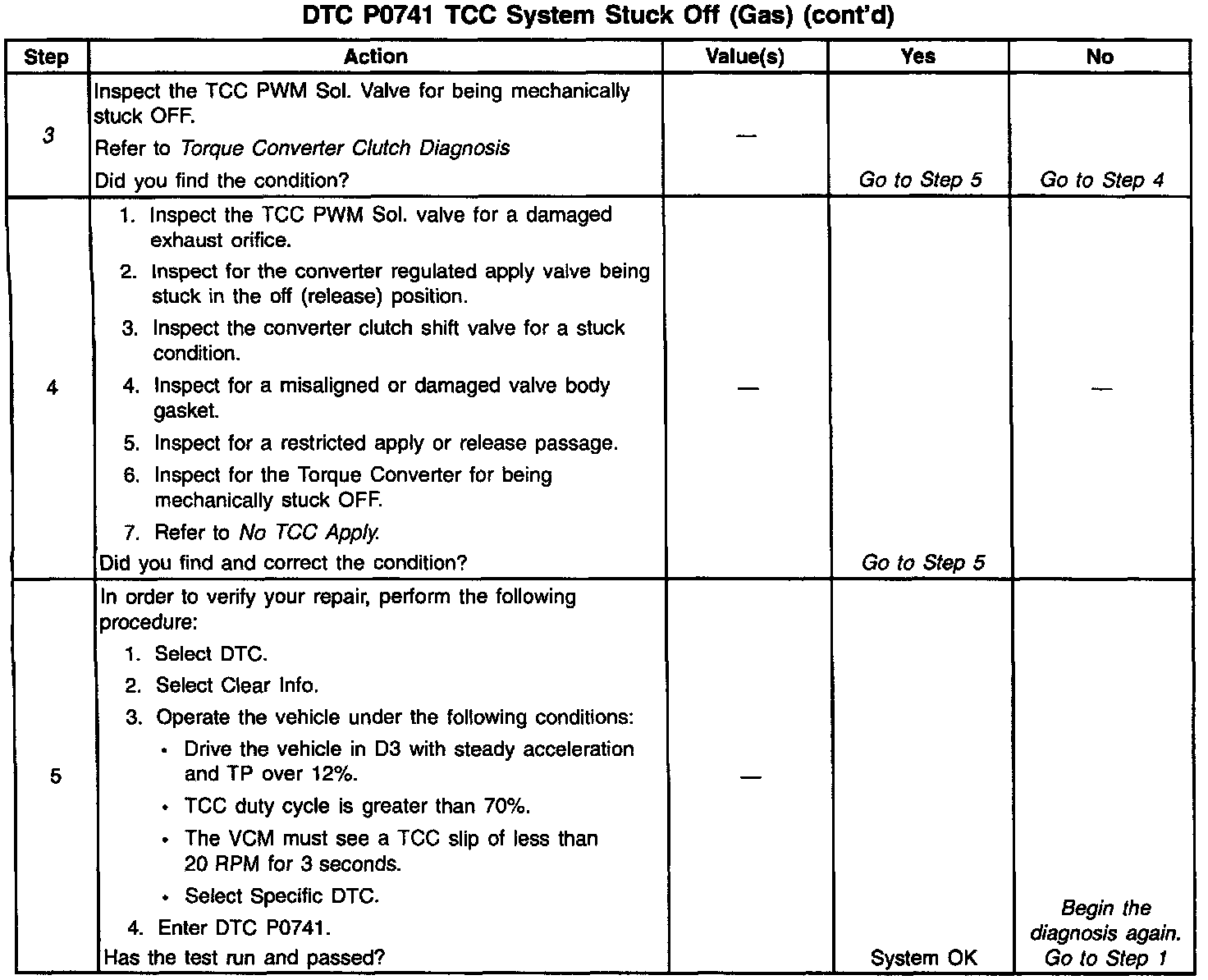 2. This step tests for excessive TCC slip when TCC is commanded on.