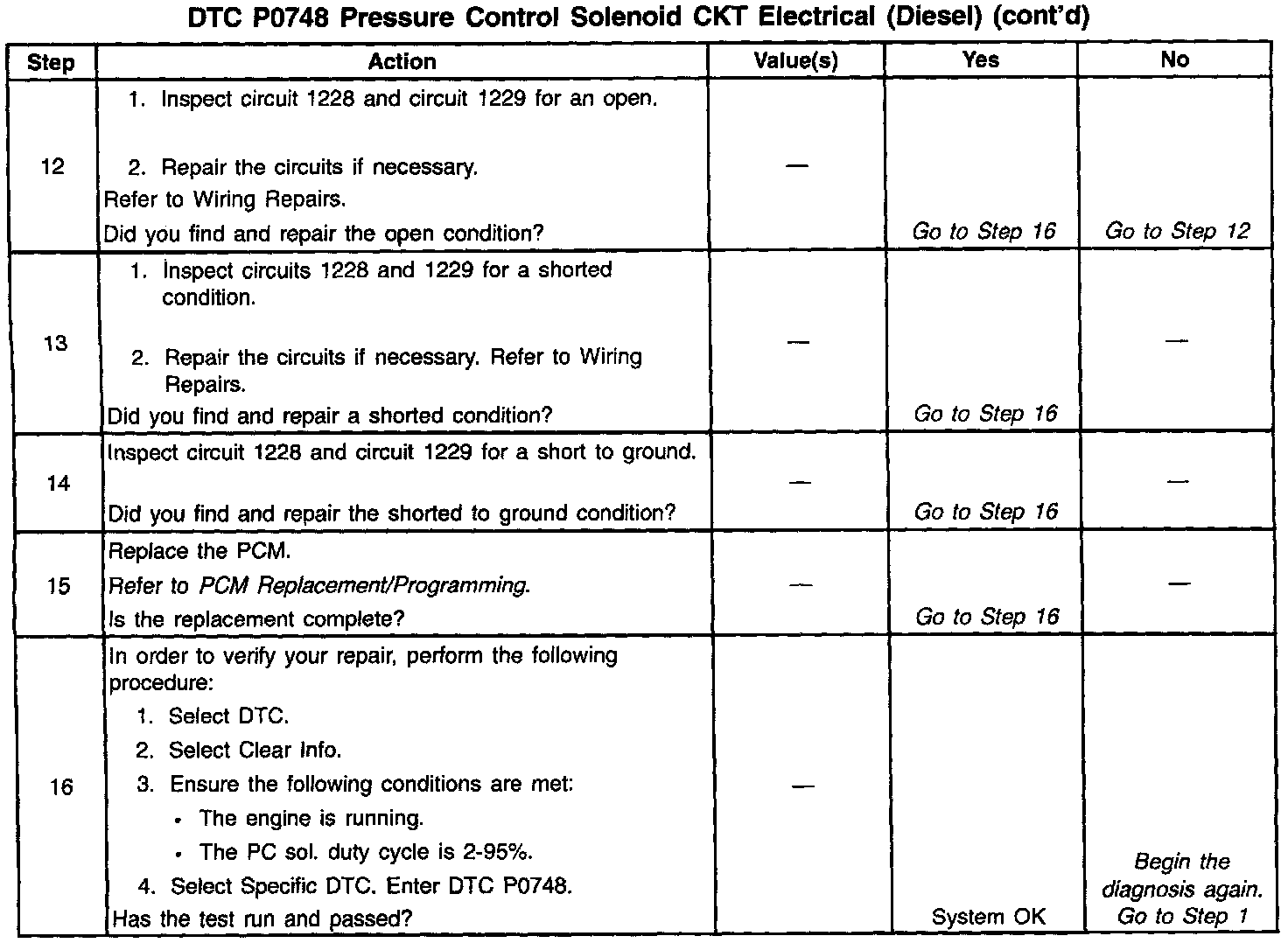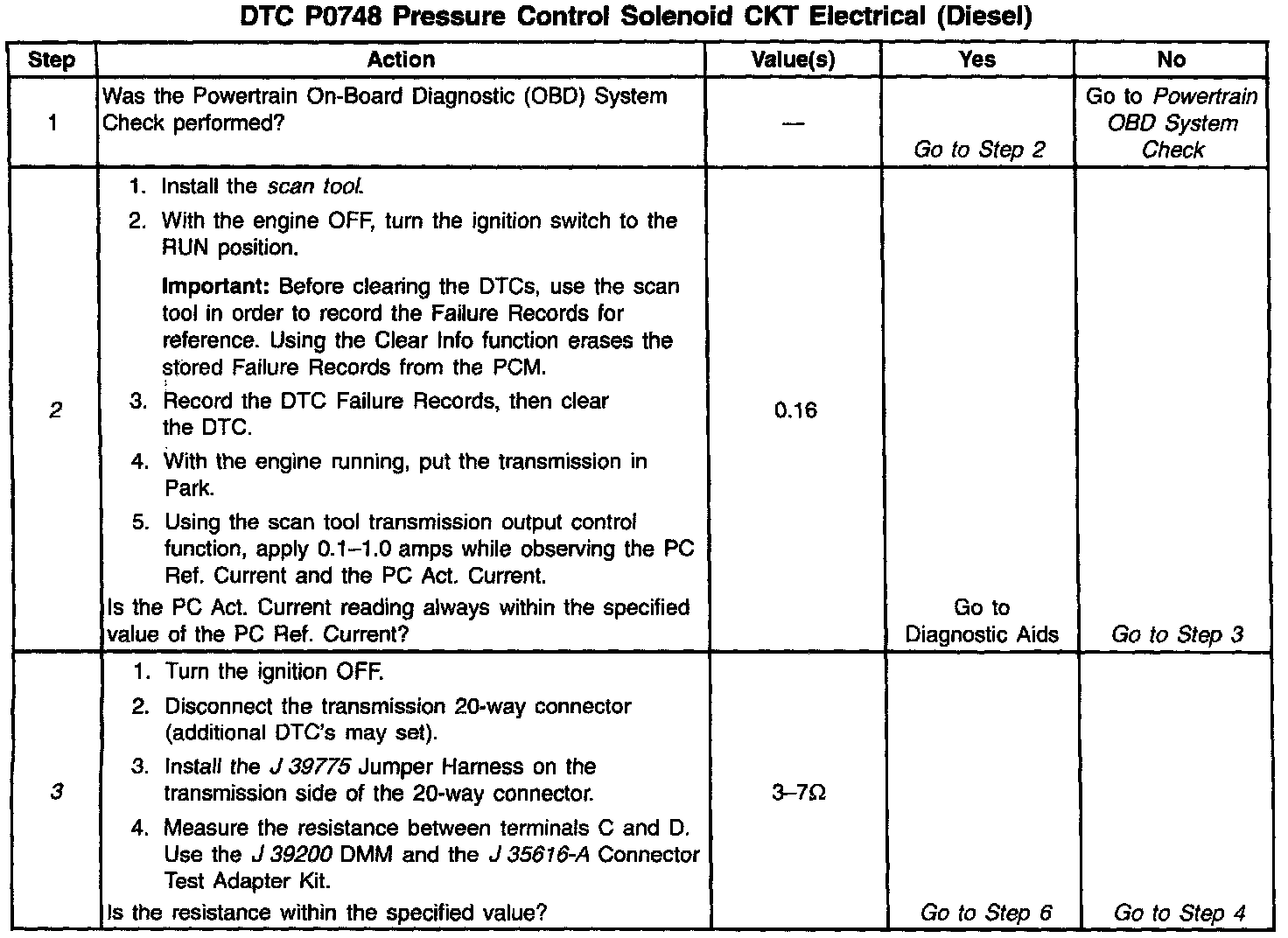 If the PCM detects a PC duty cycle that exceeds 95% or is less than 1.9%, then DTC P0748 sets. DTC P0748 is a type D DTC.