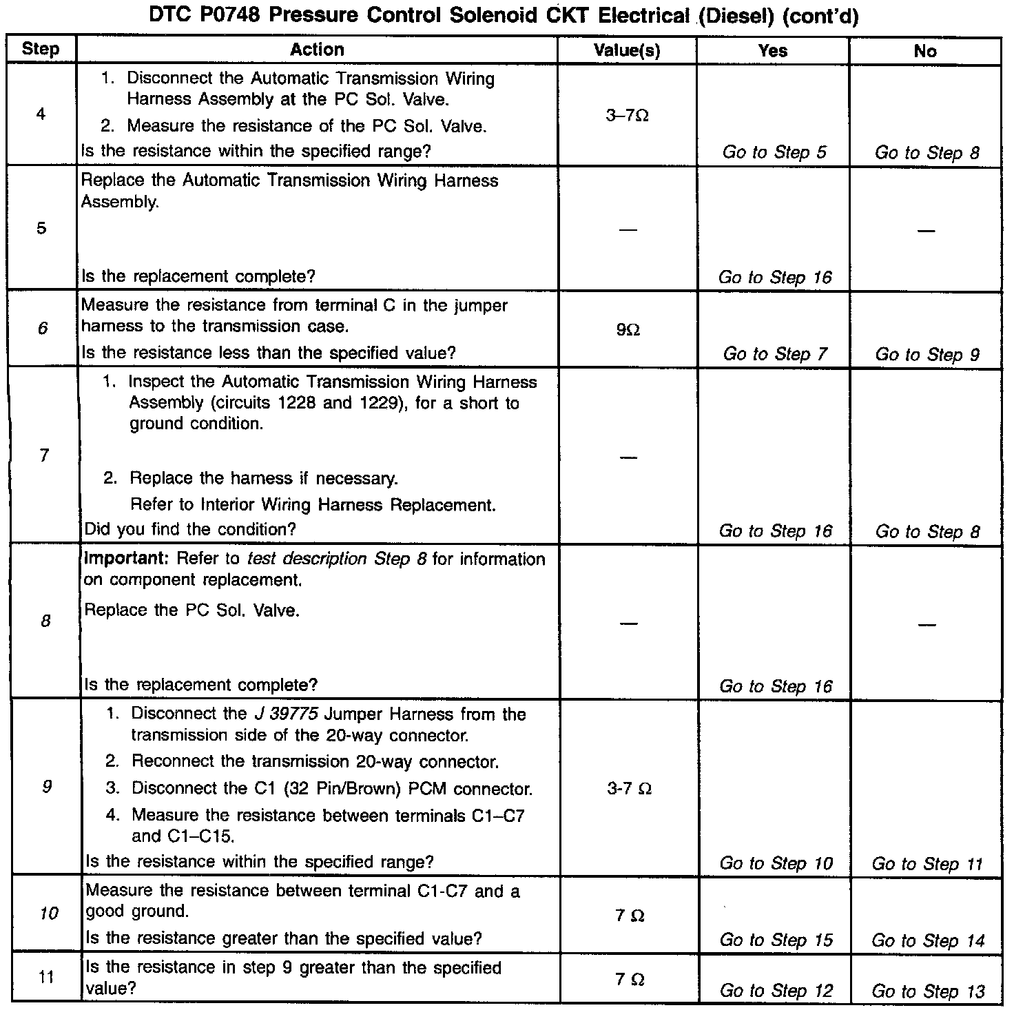 9. This step tests the entire PC sol. valve circuit for proper resistance.
