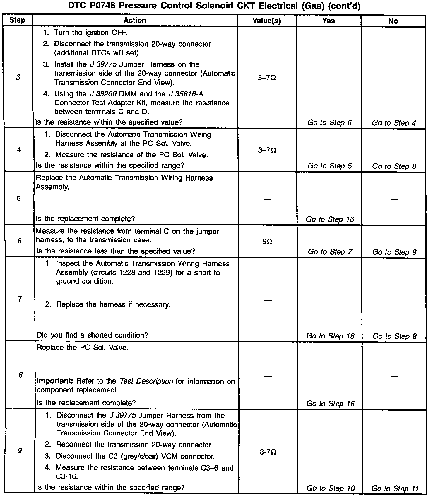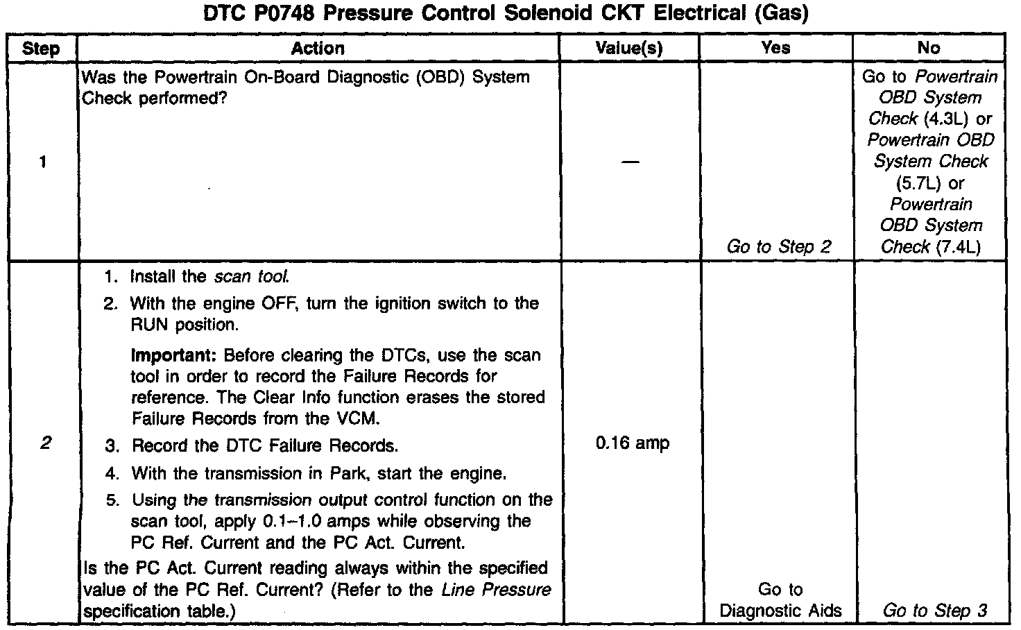If the VCM detects a PC duty cycle that exceeds 95% or less than 1.9%, then DTC P0748 sets. DTC P0748 is a type D DTC.