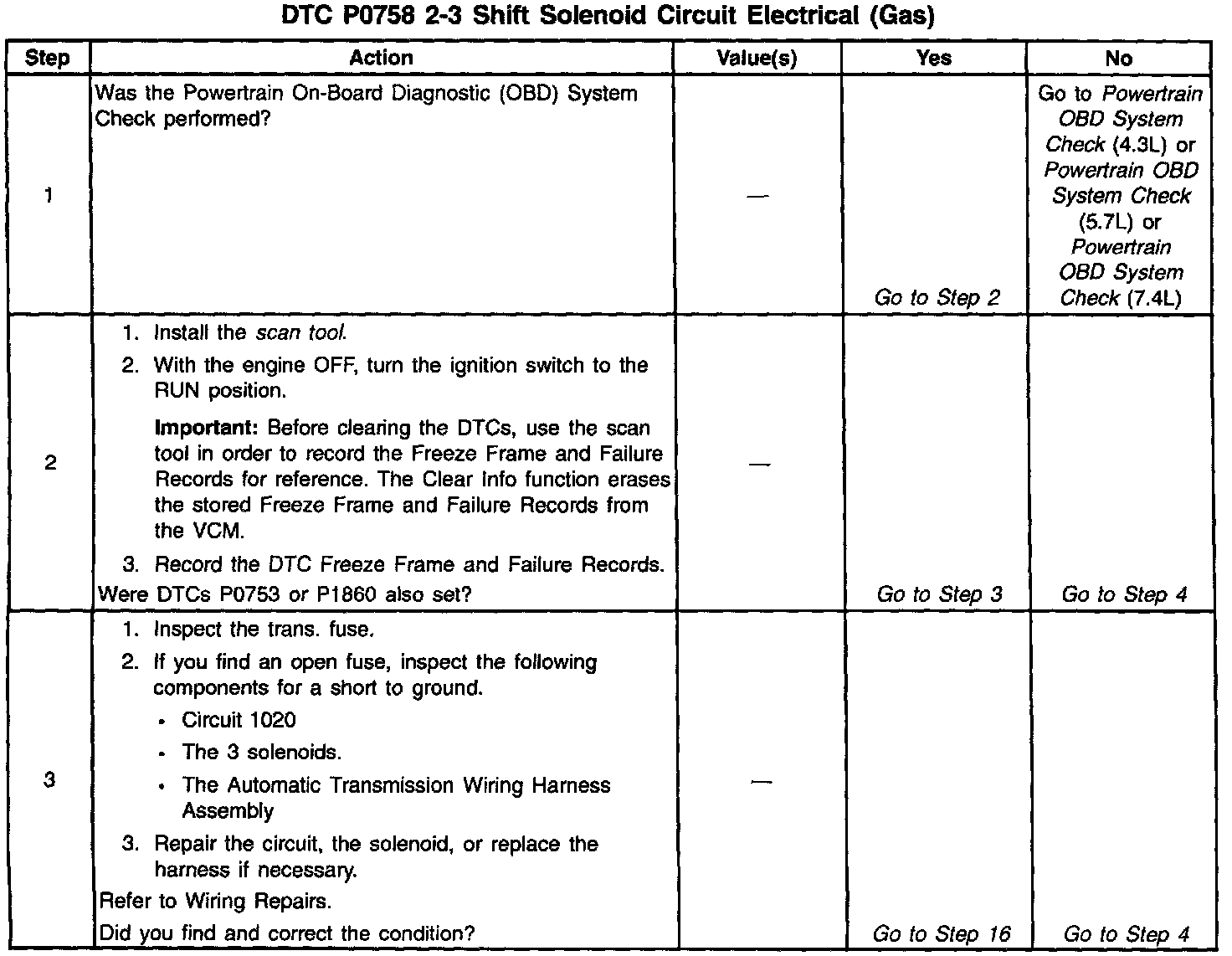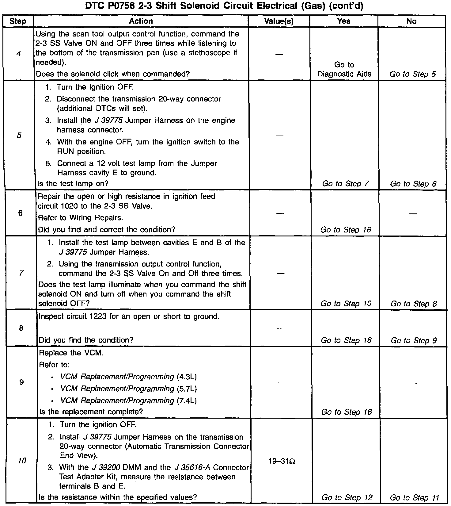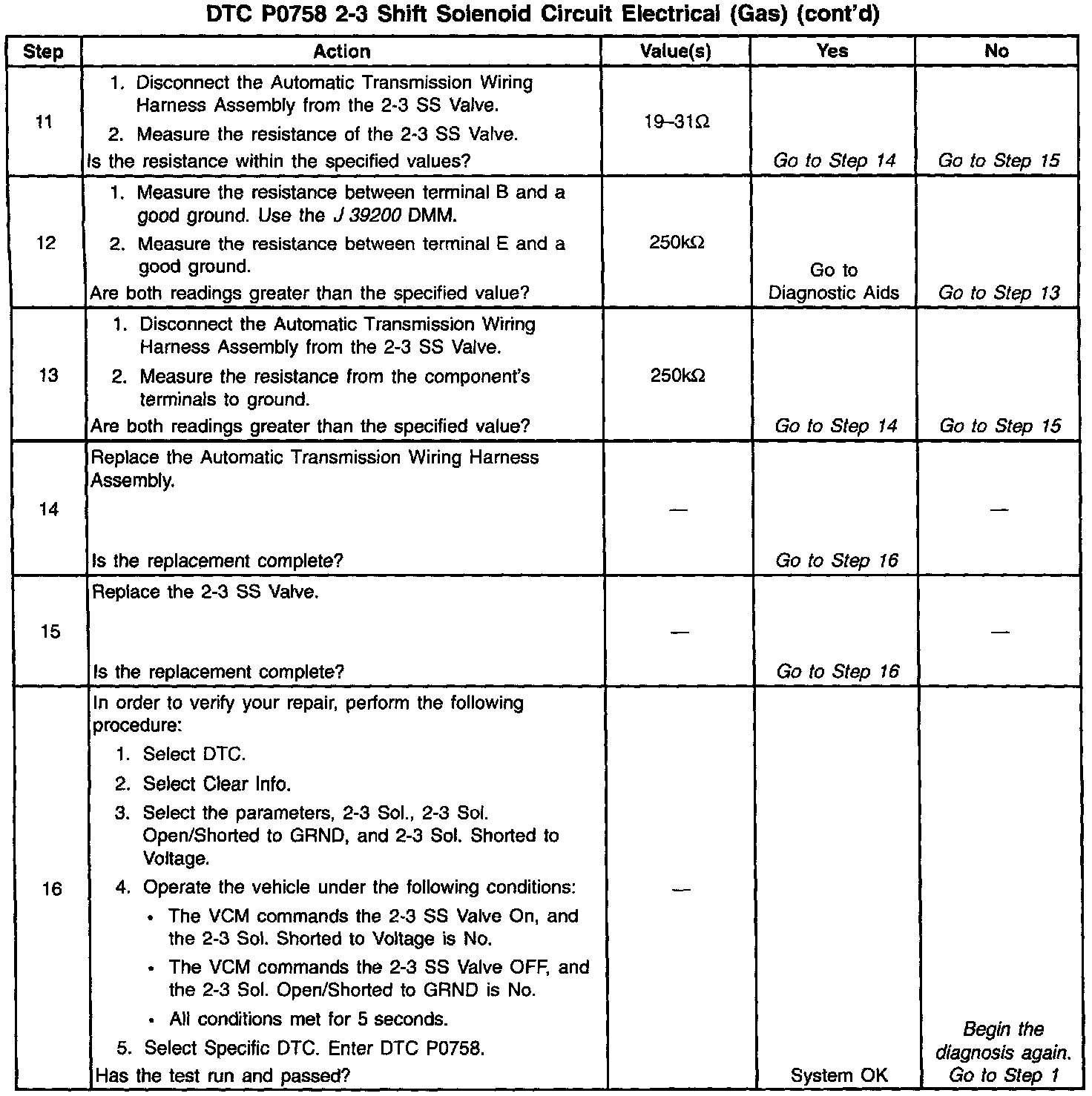 If the VCM detects a continuous open or short in the 2-3 SS Valve circuit or the 2-3 SS Valve, then DTC P0758 sets. DTC P0758 is a type D DTC. For California emissions vehicles, DTC P0758 is a type A DTC.