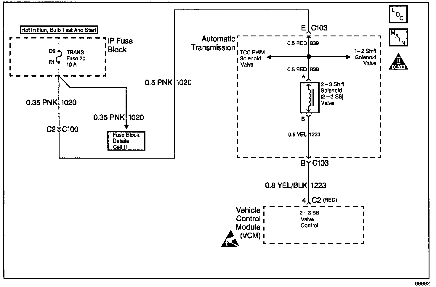 - The VCM commands the 2-3 SS Valve On, and the voltage input remains high (B+), or