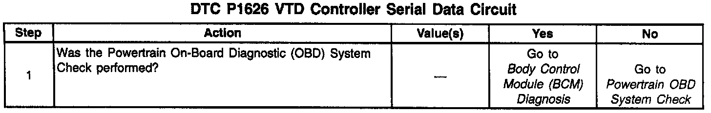The most likely cause of DTC P1626 is a loss of serial data communication to the VTD control module. Check for loss of power to the VTD control module or for other causes of communication loss. The PCM enables fuel on future ignition cycles only if the failure occurred when the engine was running.