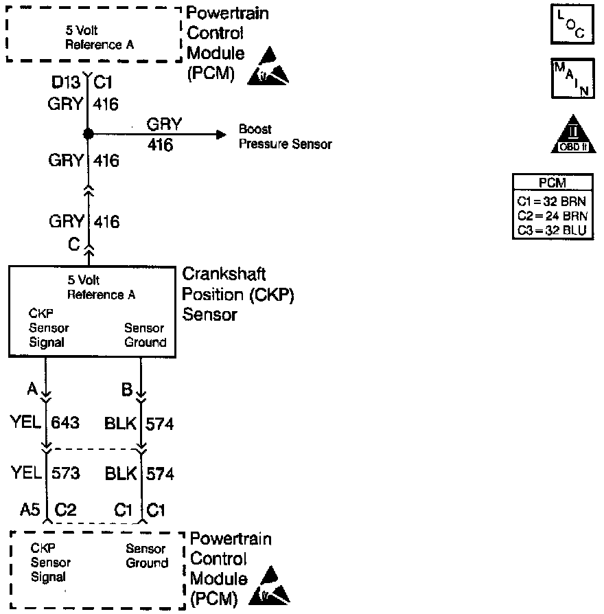 The PCM provides a 5 volt supply for use in powering up the sensors. This test monitors the voltage present at terminals BRD13 (shared by Boost and Crankshaft Position sensors) and BRD14 (the Optical/Fuel temperature sensor (Cam/HI. Res)).