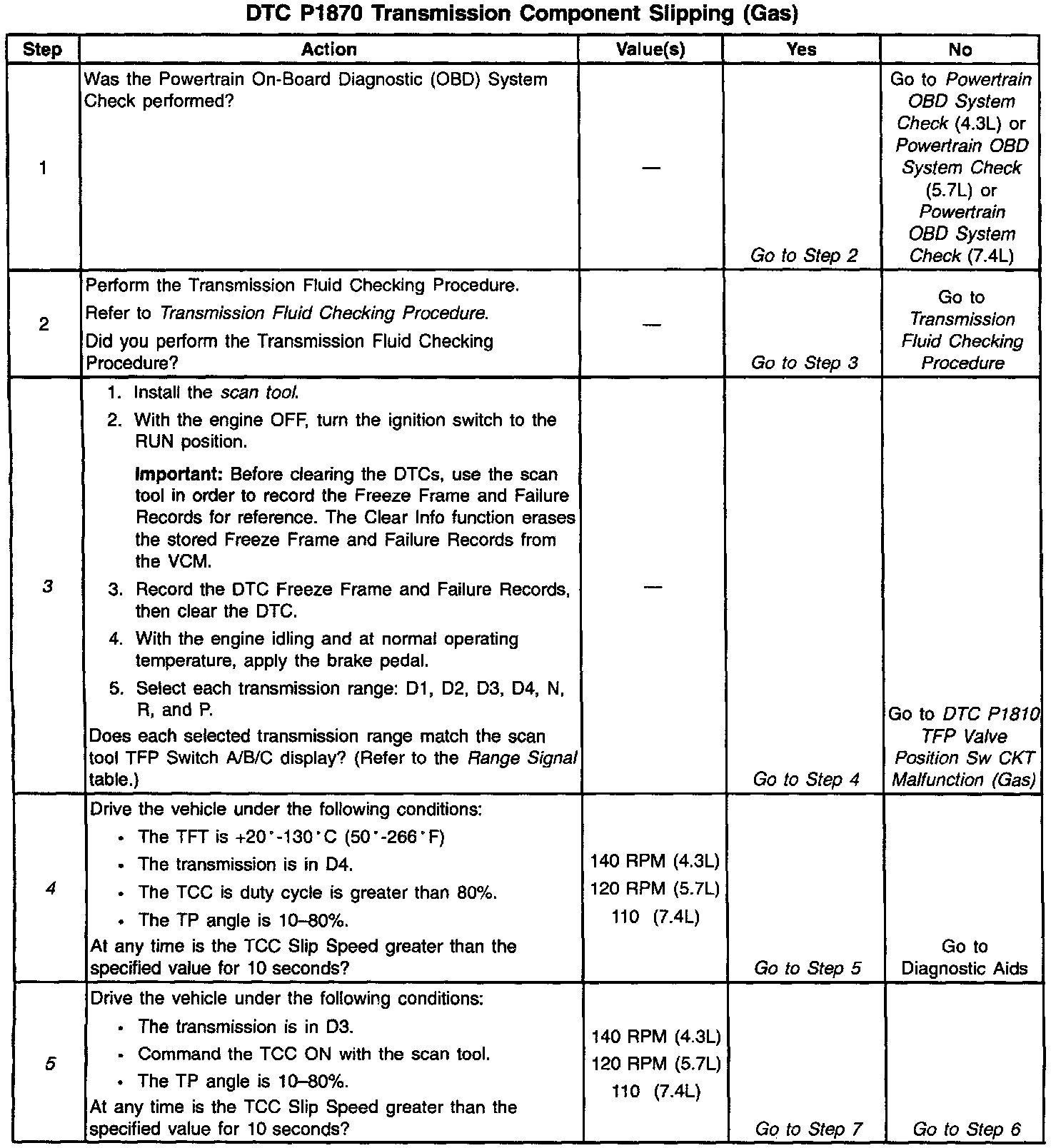 ^ A mechanical failure of the shift solenoids or TCC PWM Sol. Valve can set DTC P1870.