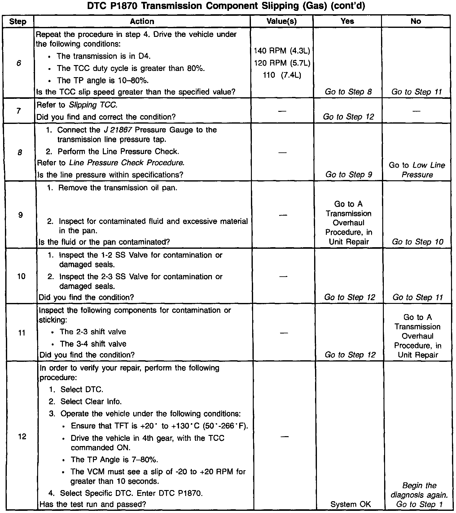 6. This step tests for a sticking TCC shift valve.