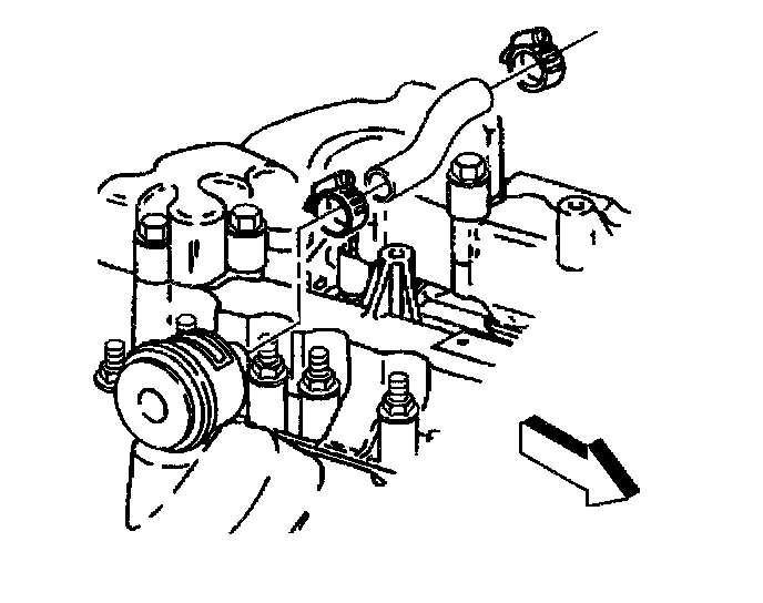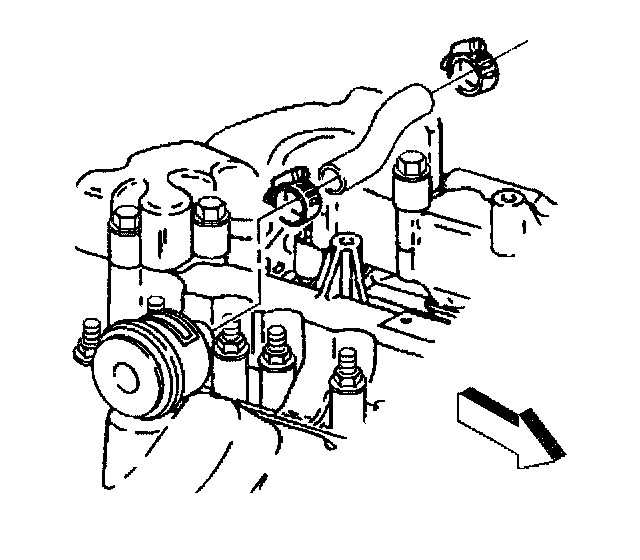 8. Remove the fuel return line clip at the valve rocker arm cover stud.