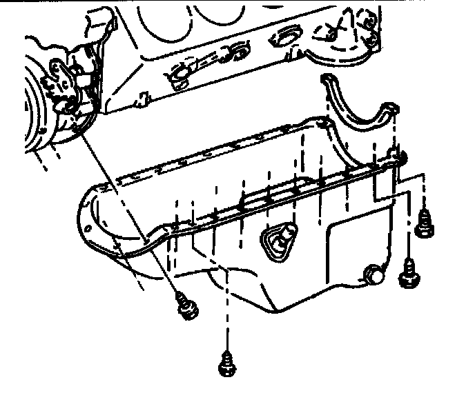 1. Apply a 5 mm (3/16 inch) bead of RTV sealant GM P/N 1052915 or equivalent to the oil pan sealing surface, inboard of the bolt holes. The sealer must be wet to touch when the oil pan is installed.