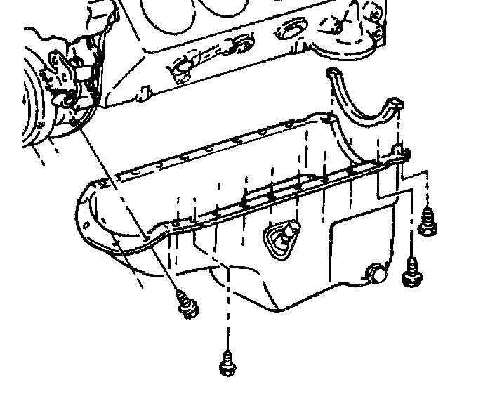 7. Remove the oil pan mounting bolts from the engine block.