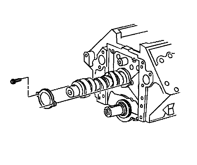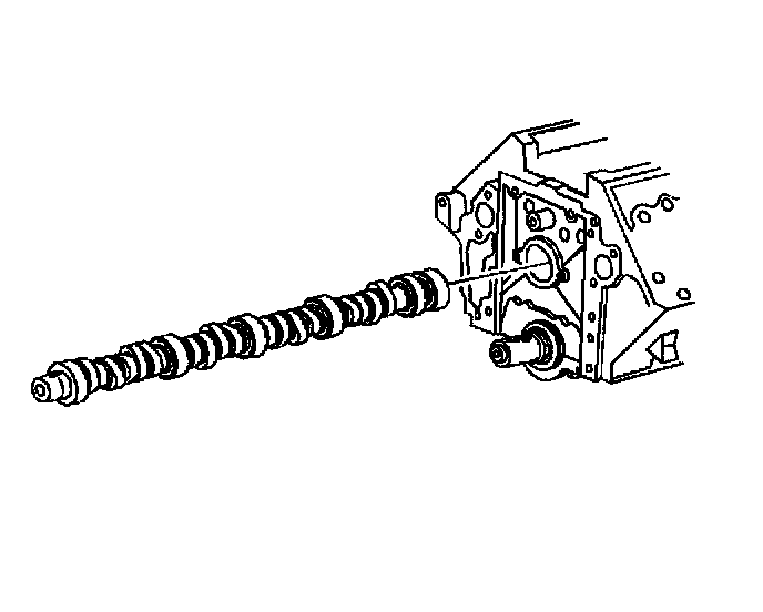 IMPORTANT: Pull the camshaft from the engine cylinder block carefully to avoid damage to the camshaft bearings.