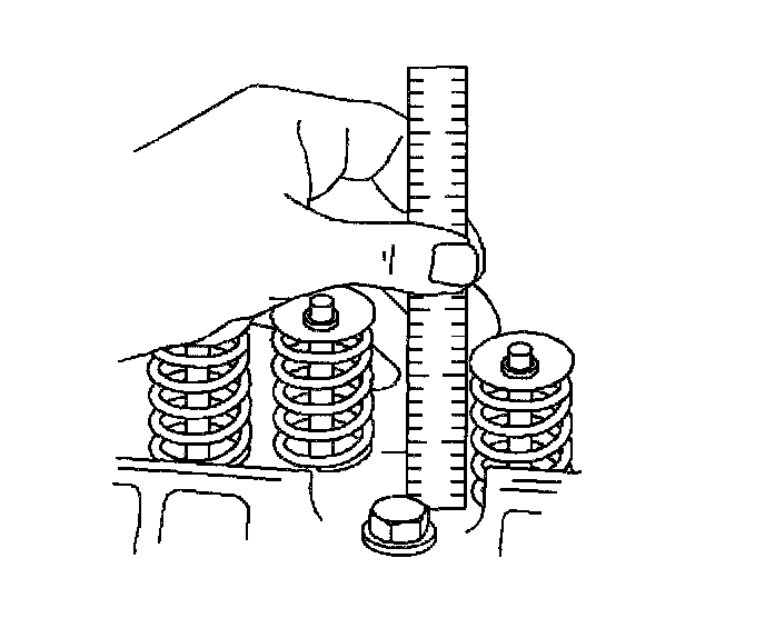 15.1. Using a narrow thin scale, measure the valve installed height from the spring seat in the cylinder head to the top of the valve spring cap. Refer to Engine Mechanical Specifications.