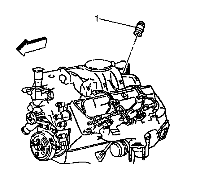7. Using the J 41712 Oil Pressure Sending Unit Socket, remove the oil pressure sending unit (1).