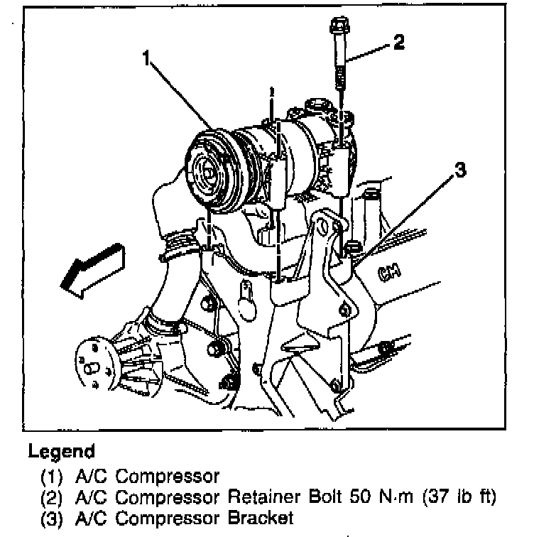 ^ The bolt at the compressor to 50 N.m (37 lb ft).