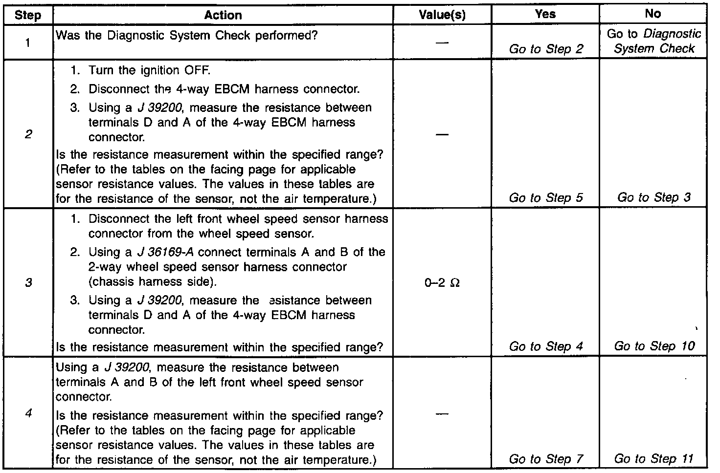 4. This step checks the resistance of the left front wheel speed sensor.