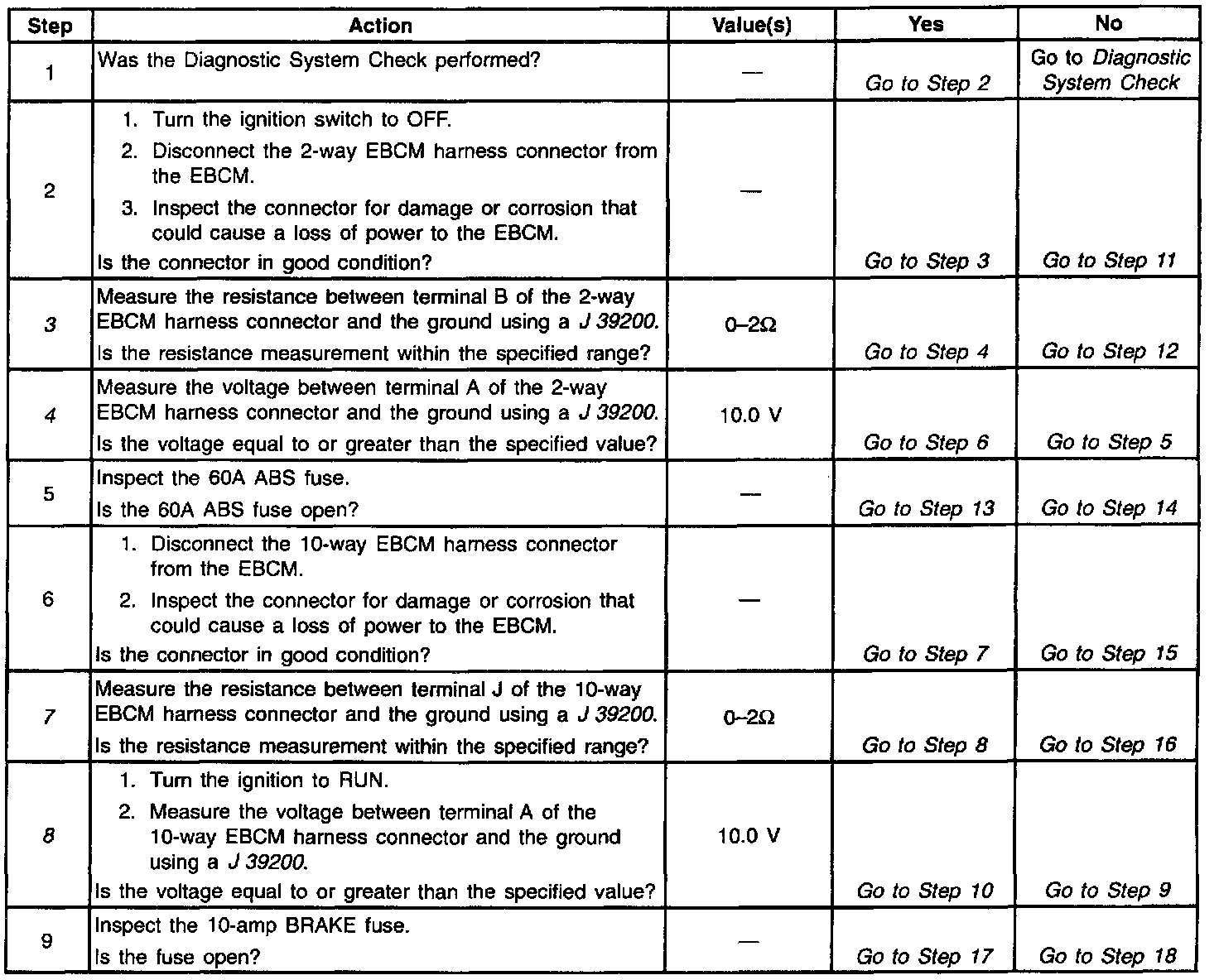 The pump motor relay supplies power to all six solenoid coils (three isolation solenoid coils and three dump solenoid coils) and the motor when the ABS is required. The relay and the six solenoid coils are located within the Electronic Brake Control Module (EBCM).