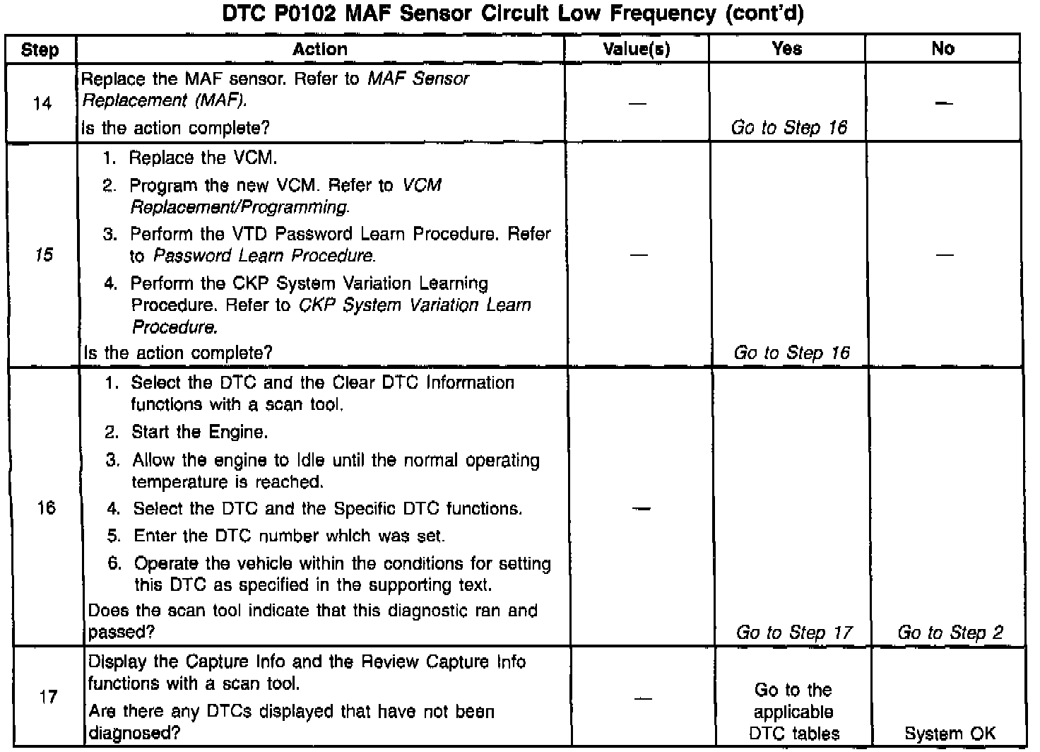 The numbers below refer to step numbers on the diagnostic table.