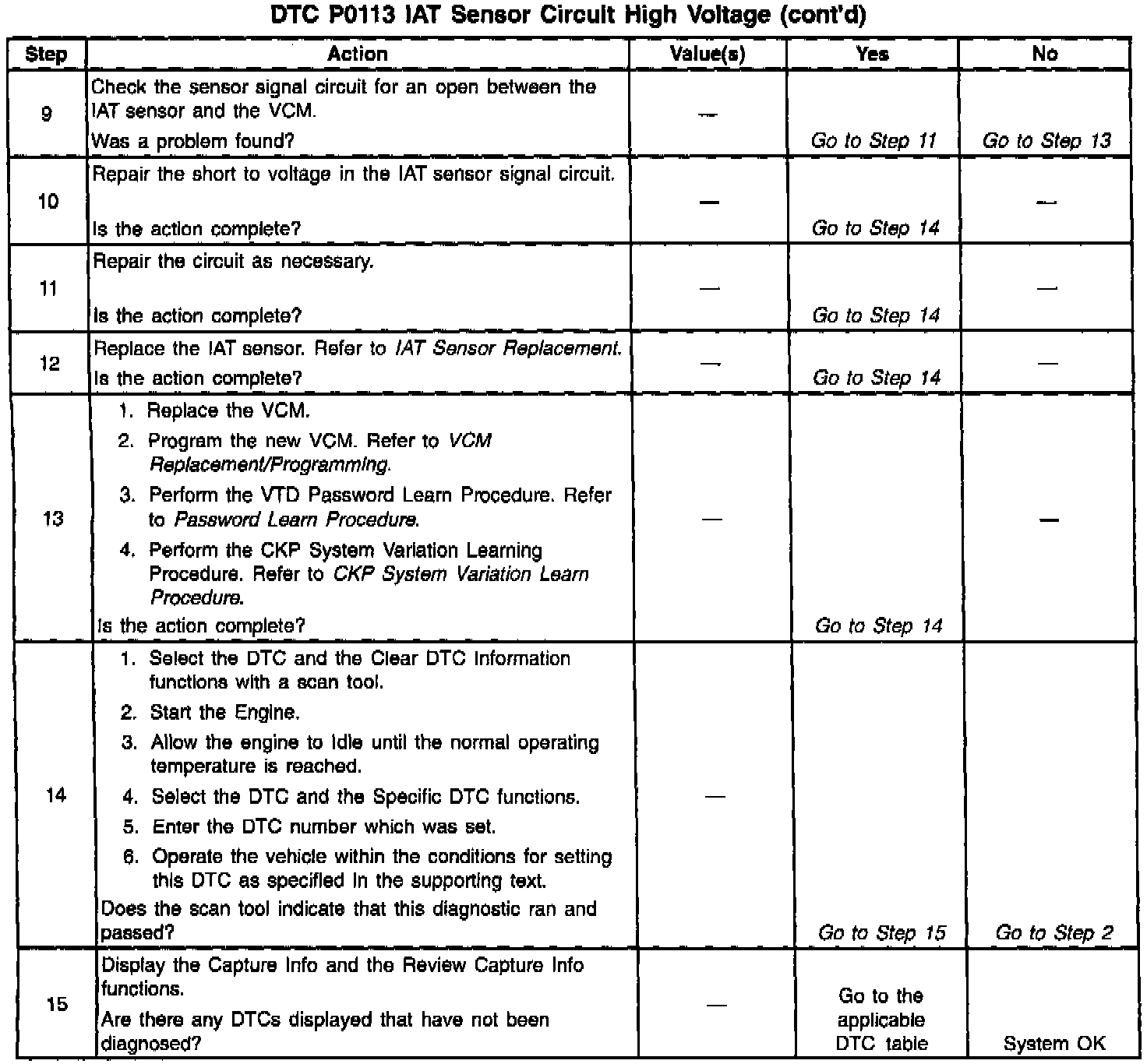 2. If the IAT sensor circuit voltage measures greater than 4.90 volts, the conditions for the DTC are still present, and the problem is not intermittent.