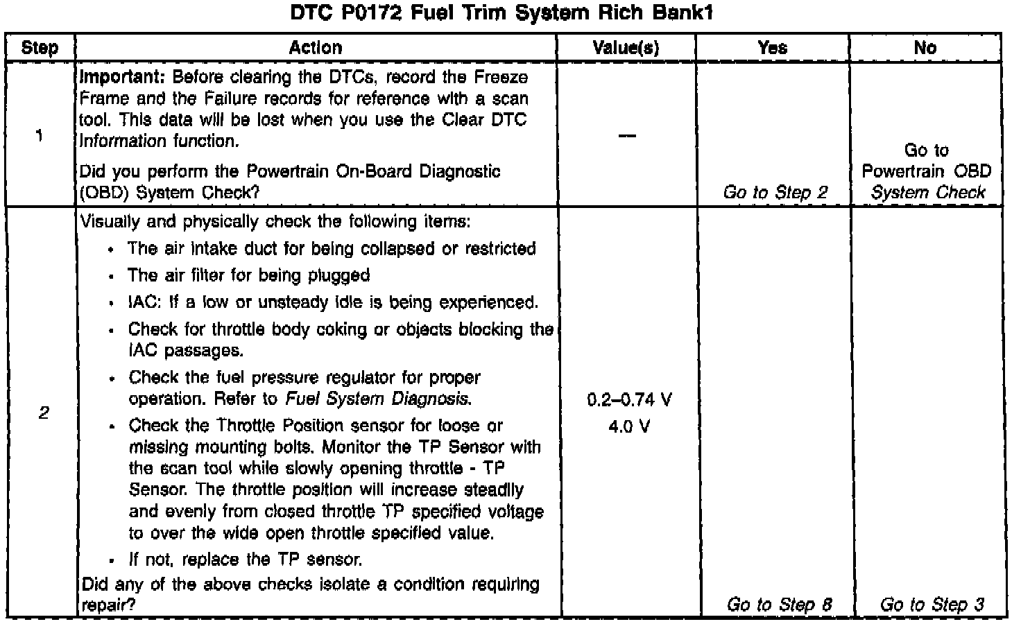 2. Visually and physically checking items which may cause a rich condition may determine the cause of the DTC P0172 being set.