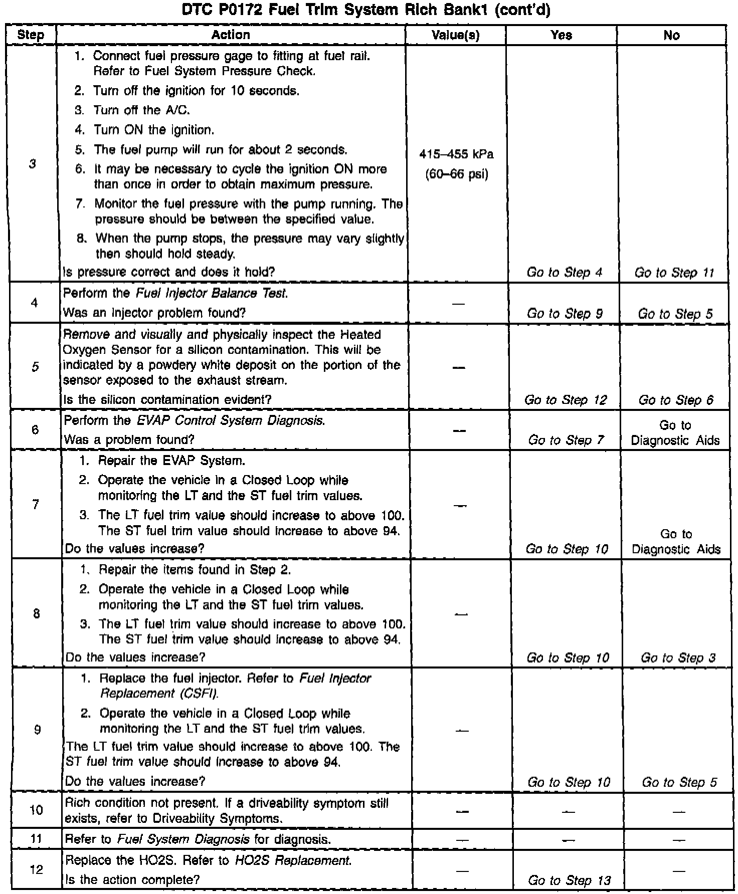 If using the diagnostic tables does not isolate the problem, try monitoring the LT fuel trim and fuel trim cell while operating the vehicle under various loads. This may isolate the condition which caused the setting of the current DTC.