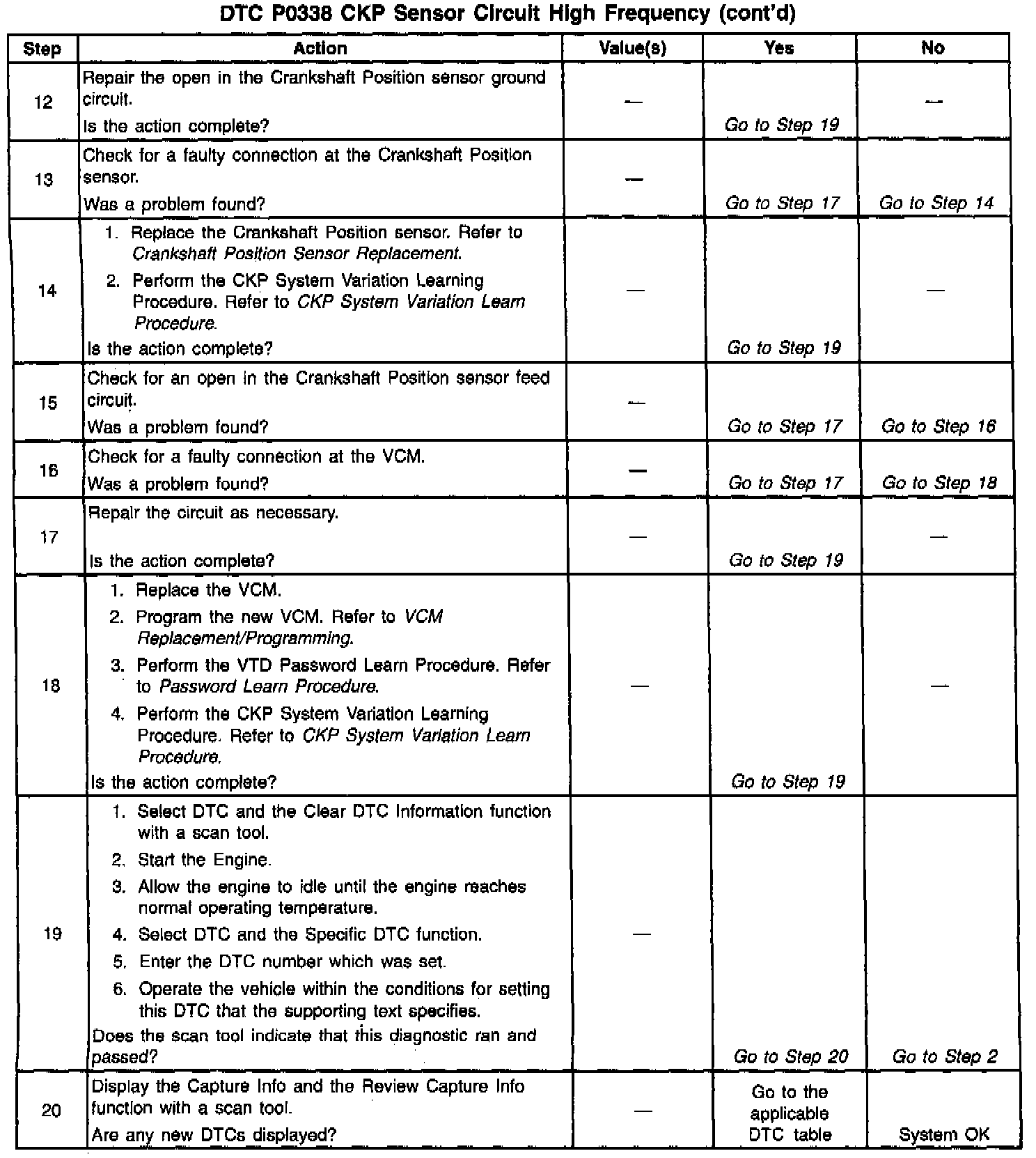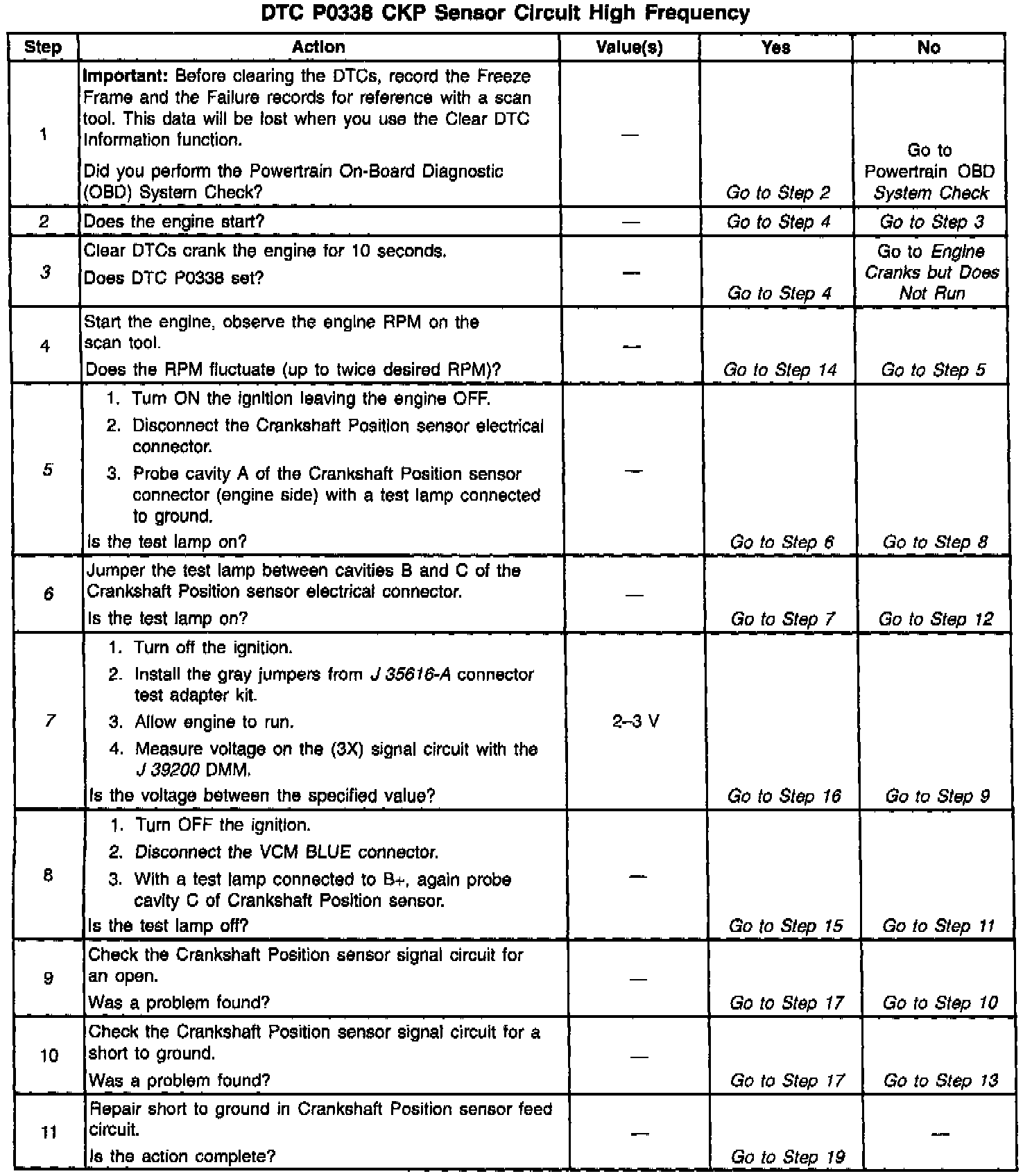 7. This test checks the crank sensor, crank sensor signal circuit and the VCM.