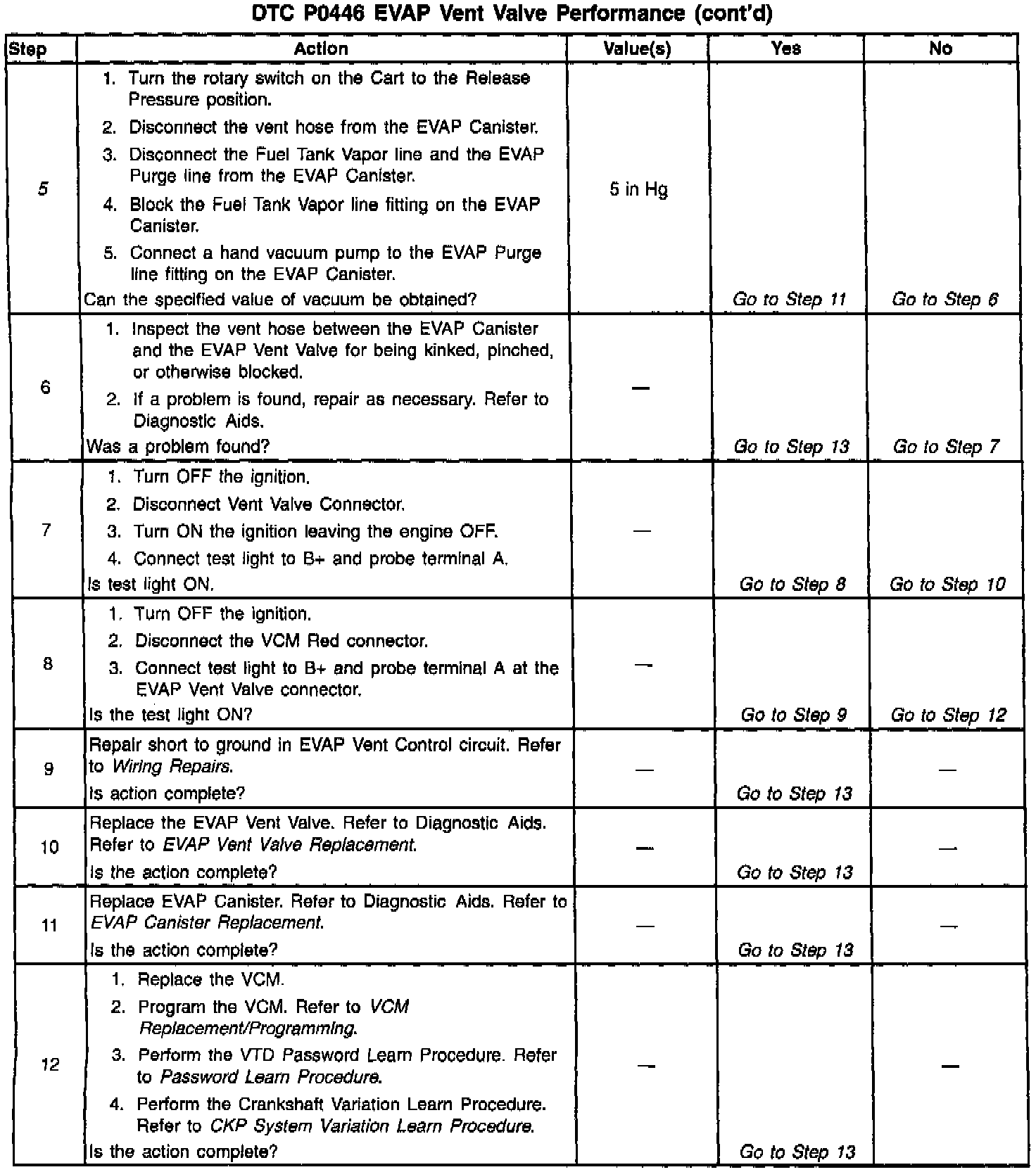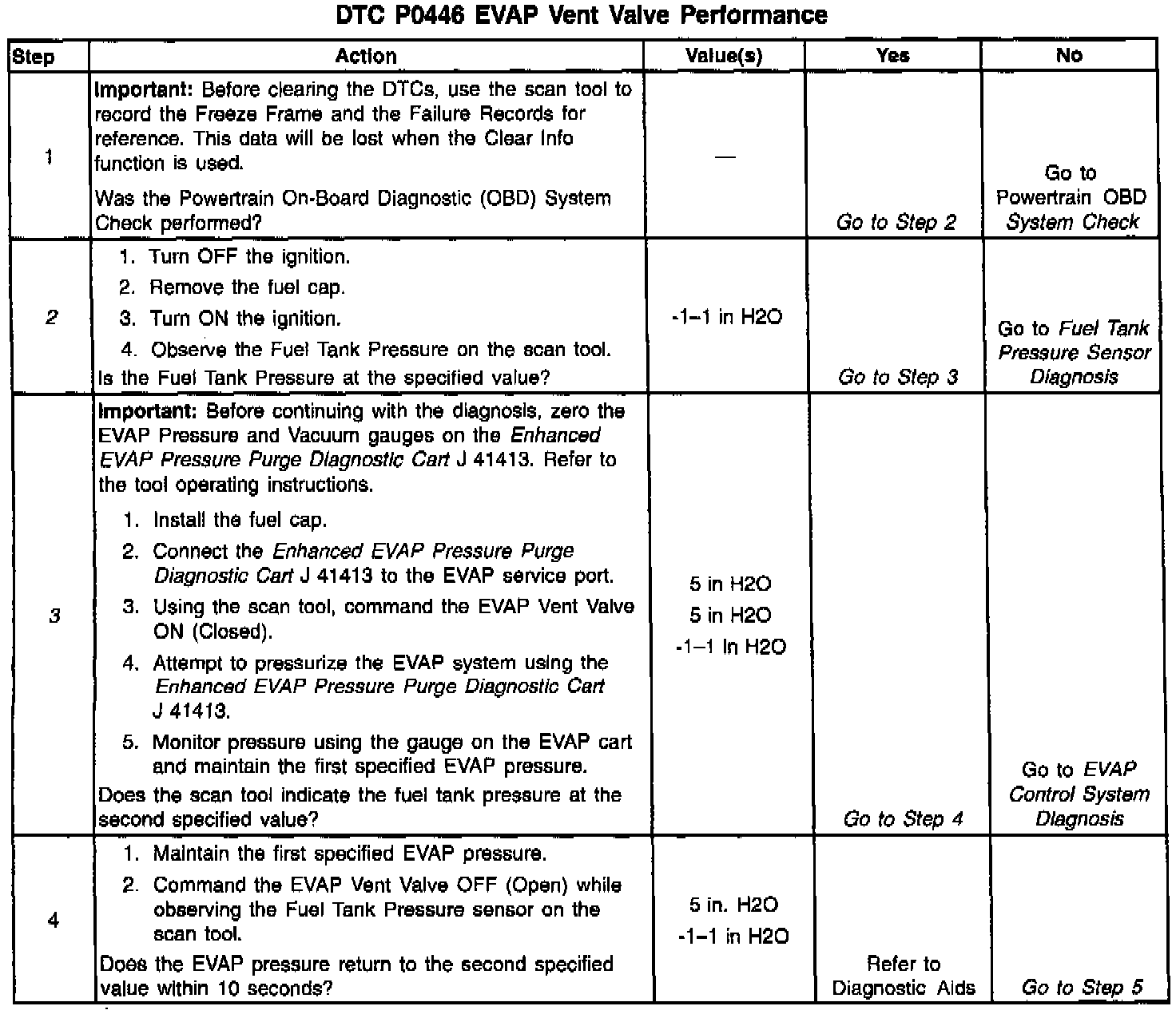 The numbers below refer to the step numbers in the diagnostic table.