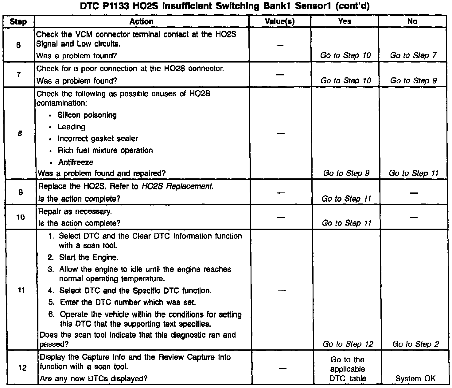 8. This step checks for causes of the HO2S failure. If the sensor is replaced without finding the cause of the contamination, the replacement sensor may become contaminated.