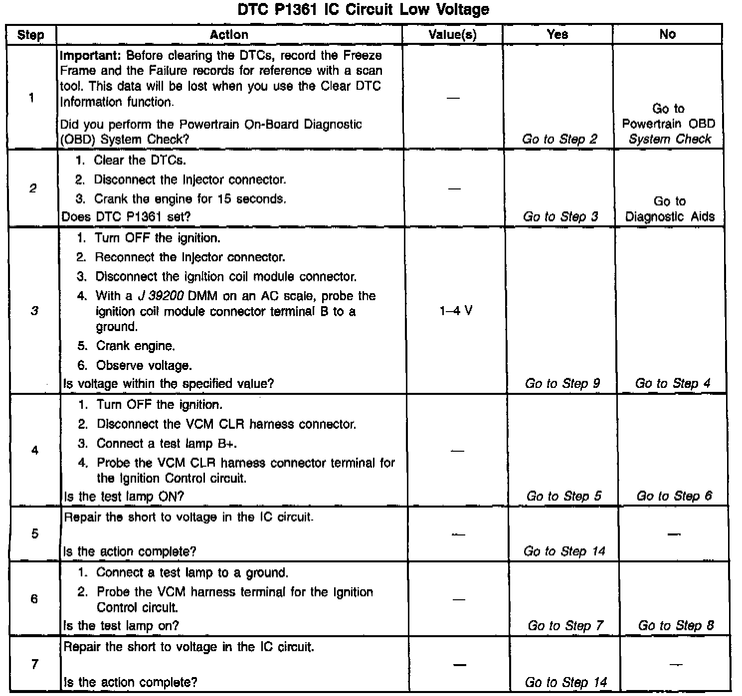 The numbers below refer to the step numbers in the diagnostic table.
