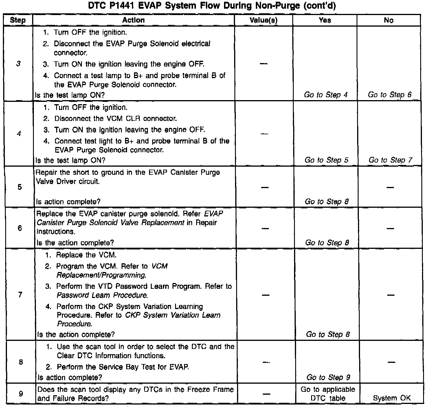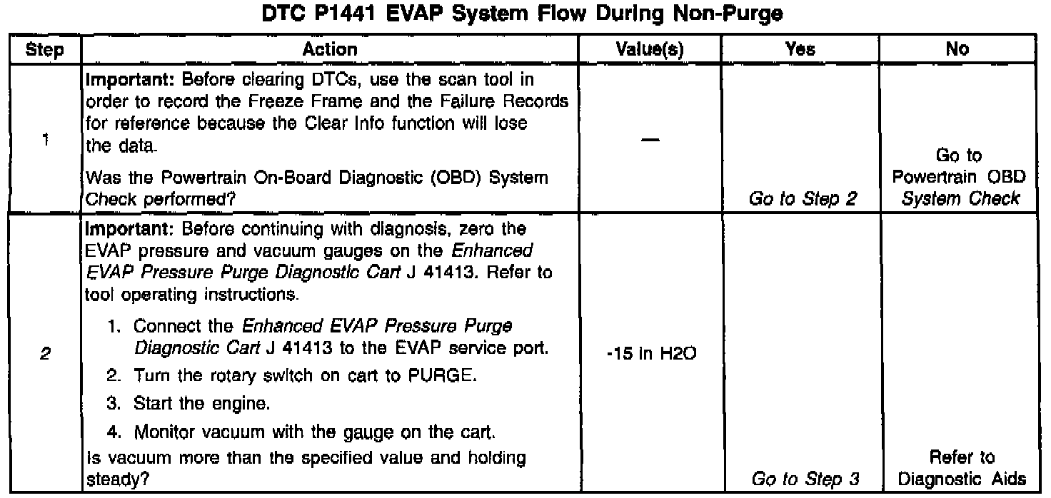 If any of these conditions are present, a DTC P1441 sets.