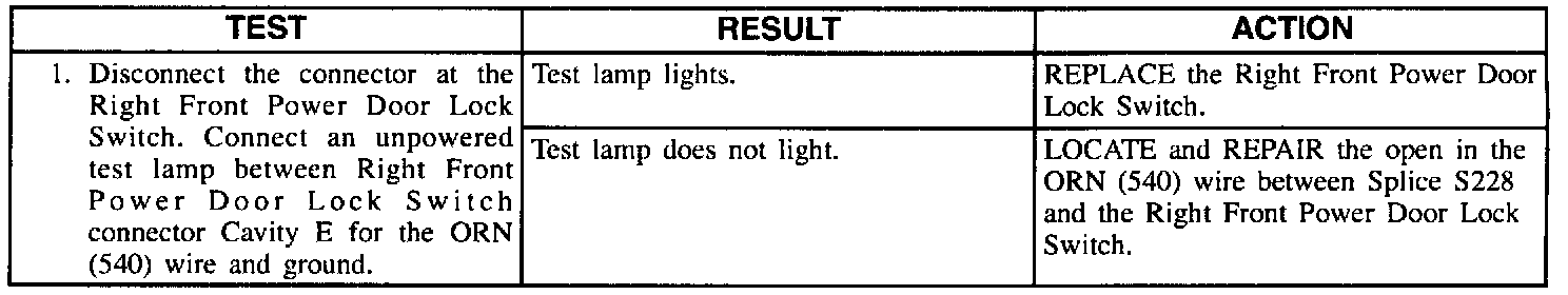 Right Front Power Door Lock Switch Does Not Lock Or Unlock Door: