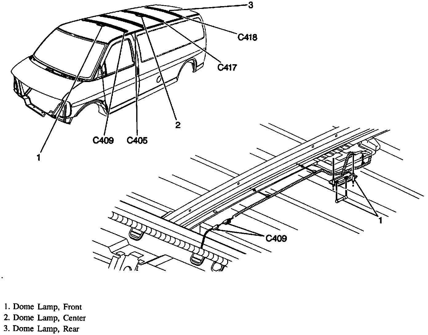 Dome Lamp, Center, Front And Rear