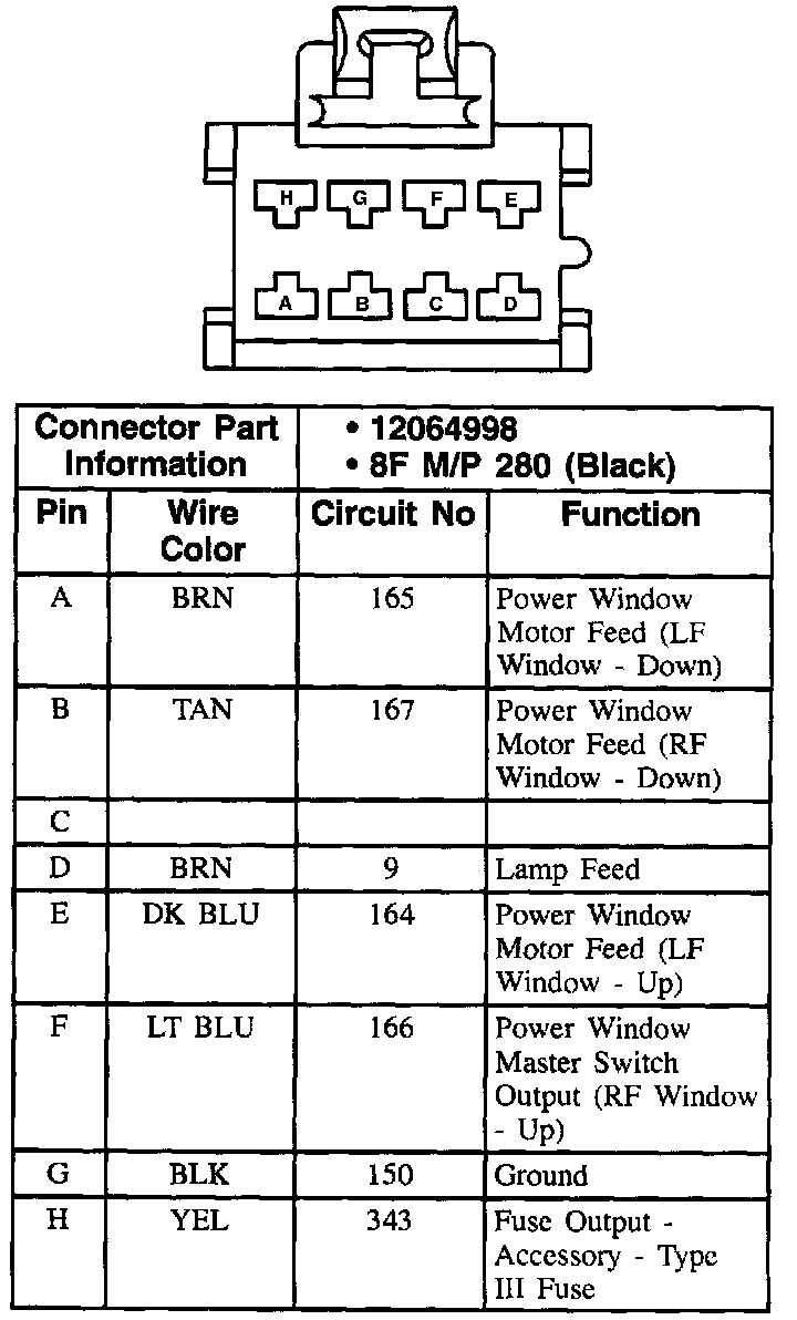 Power Side Window Switch, LF Door Connector: