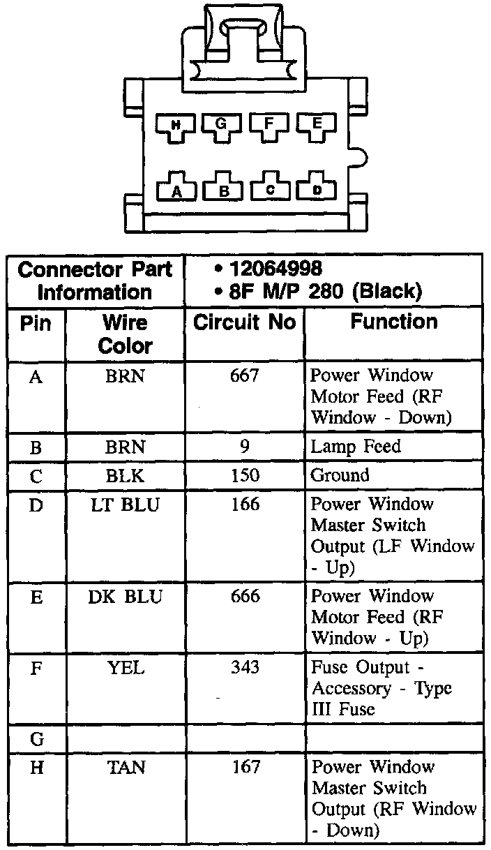 Power Side Window Switch, RF Door Connector: