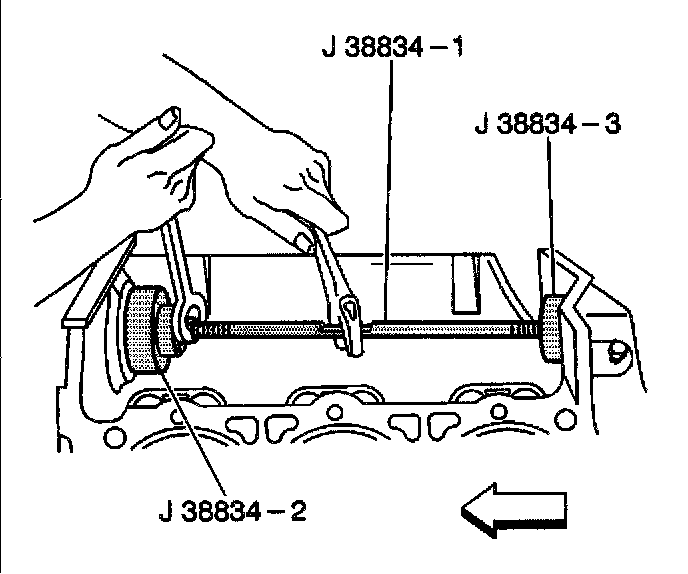 1.4. Install the J 38834-2 on the inside of the balance shaft front bearing bore.
