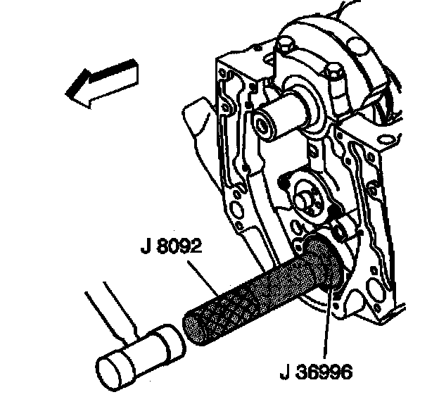 2. Use the J 36996 and the J 8092 in order to install the balance shaft.