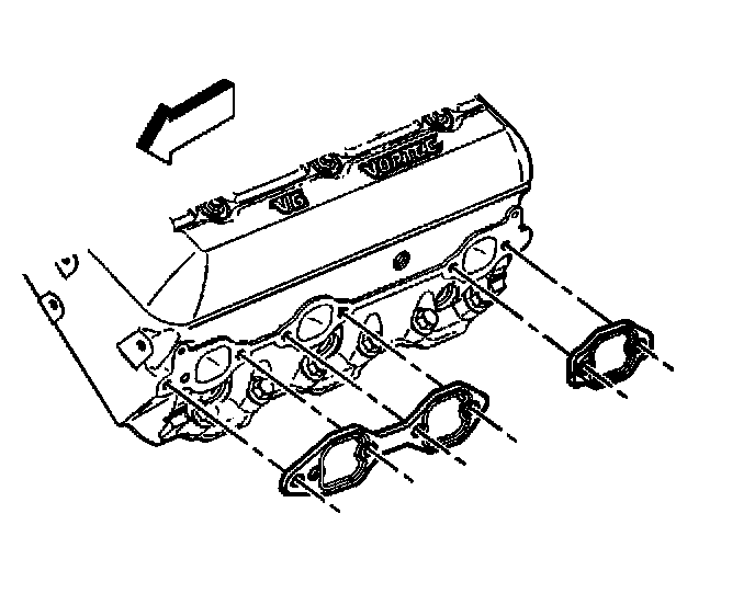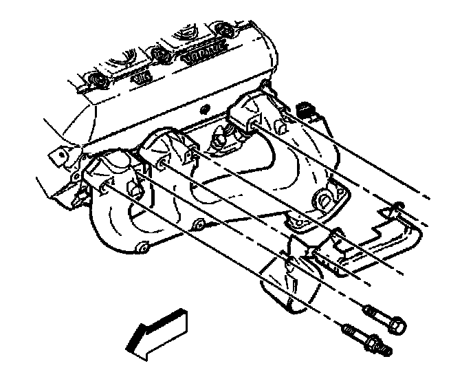 4. If reusing the fasteners, apply threadlock GM P/N 12345493 or equivalent to the threads of the exhaust manifold bolts and stud.
