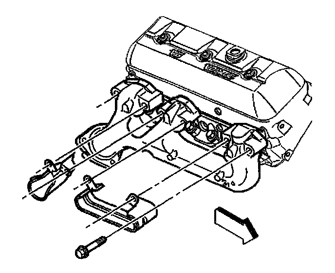 4. If reusing the fasteners, apply threadlock GM P/N 12345493 or equivalent to the threads of the exhaust manifold bolts.
