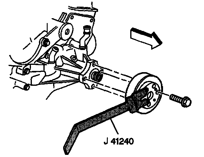1. Remove the bolts and the fan & water pump pulley using the J 41240.