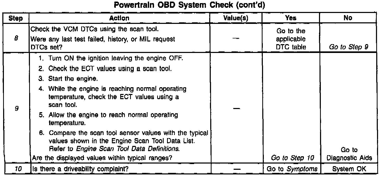Understanding the table properly reduces the diagnostic time. Proper use of the OBD helps prevent the unnecessary replacement of good parts.