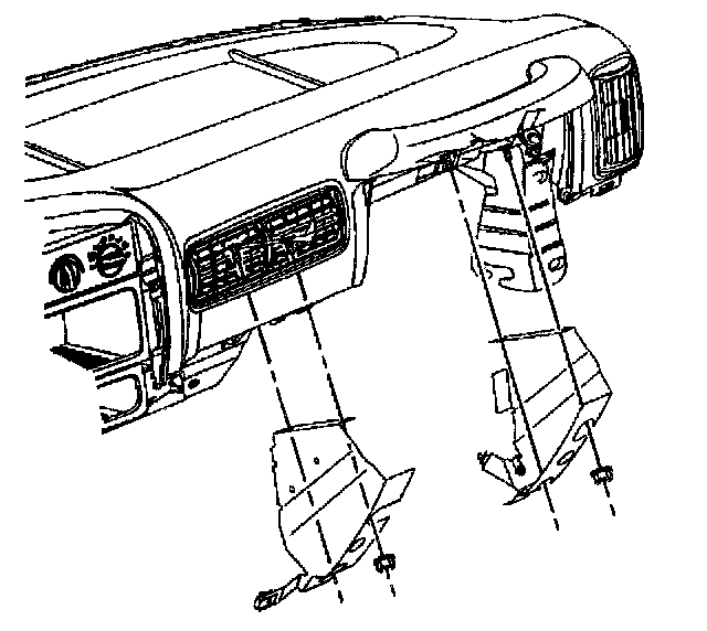 2. Remove the nuts that retain the instrument panel knee bolster inner and outer brackets to the instrument panel carrier.